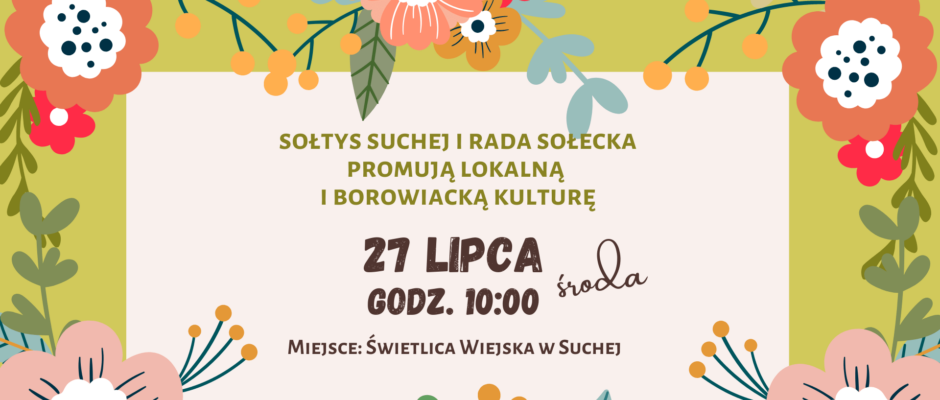 UWAGA! INICJATYWA LOKALNA W SUCHEJ, pn. „Sołtys Suchej i Rada Sołecka promują lokalną i borowiacką kulturę”.
