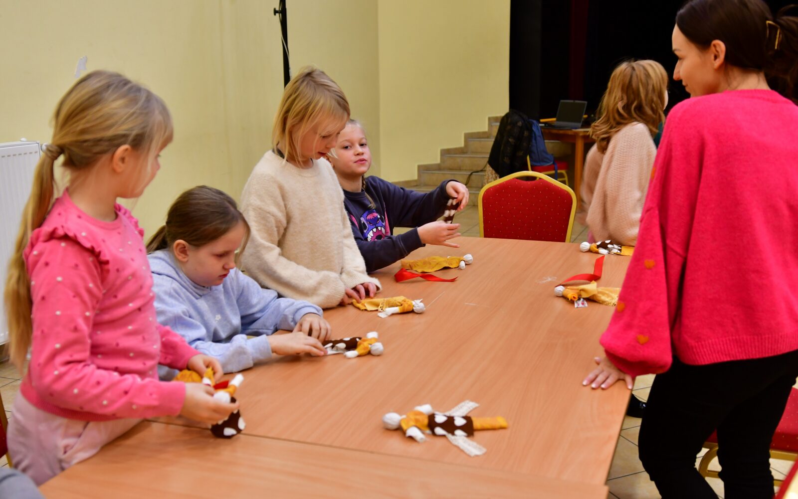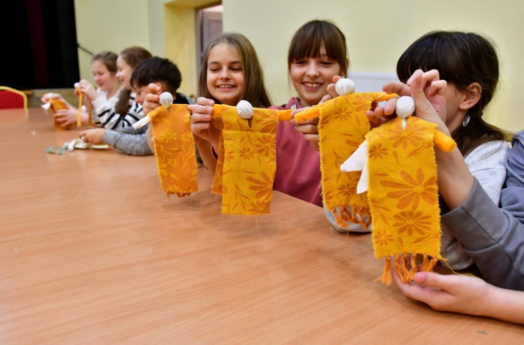 Okazało się, że wykonanie takiej lalki z naturalnych materiałów to zadanie wymagające cierpliwości i precyzji – szczególnie dla najmłodszych, dla których wiązanie supełków stało się prawdziwym wyzwaniem. Mimo to, radości i determinacji nie brakowało!