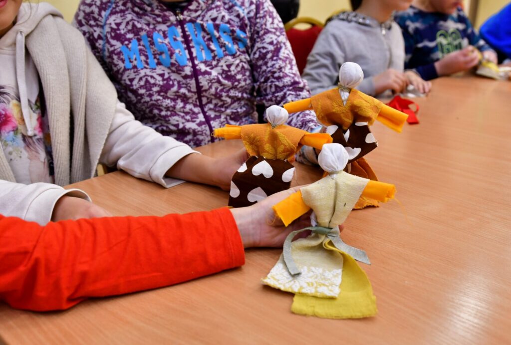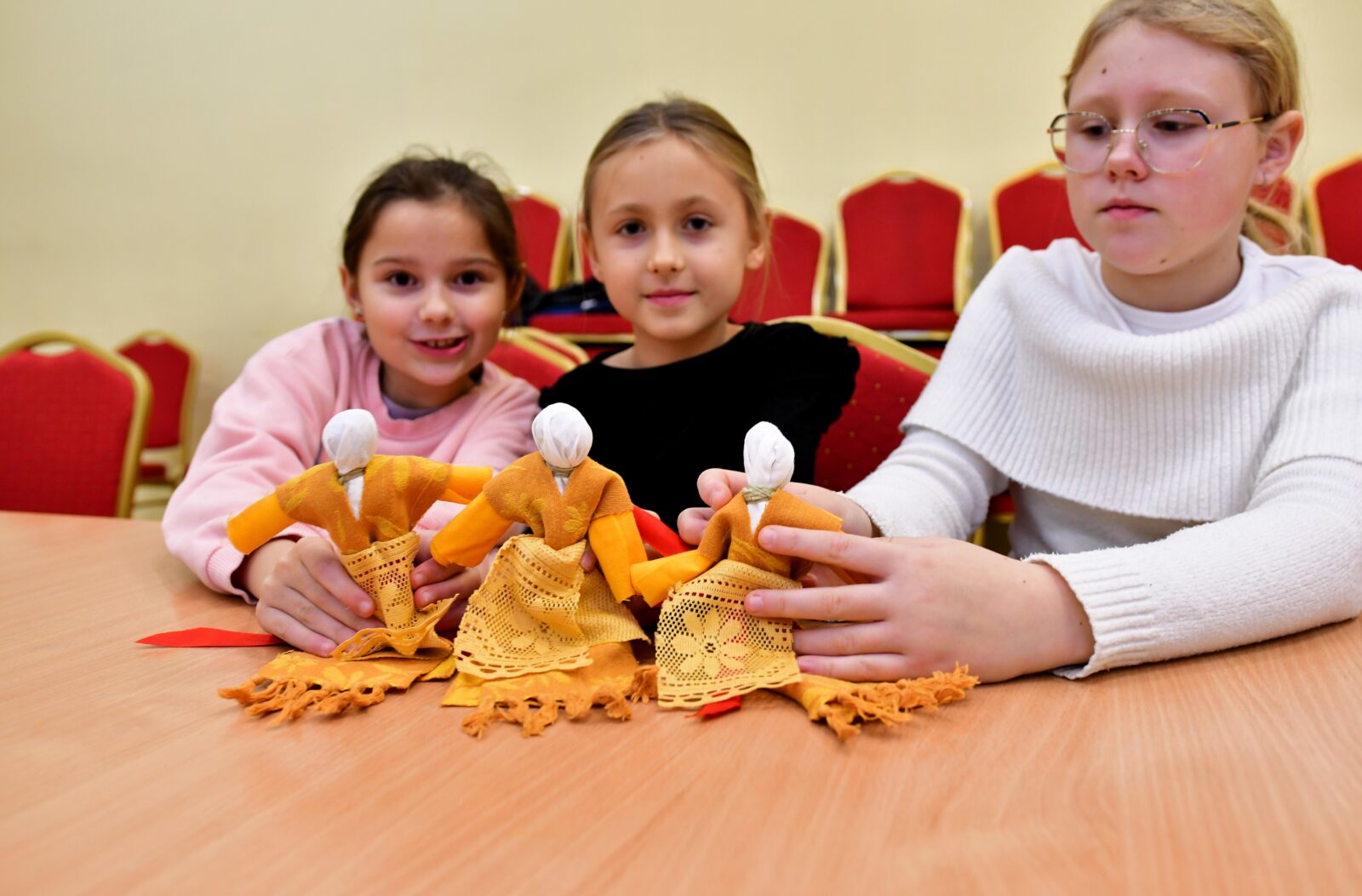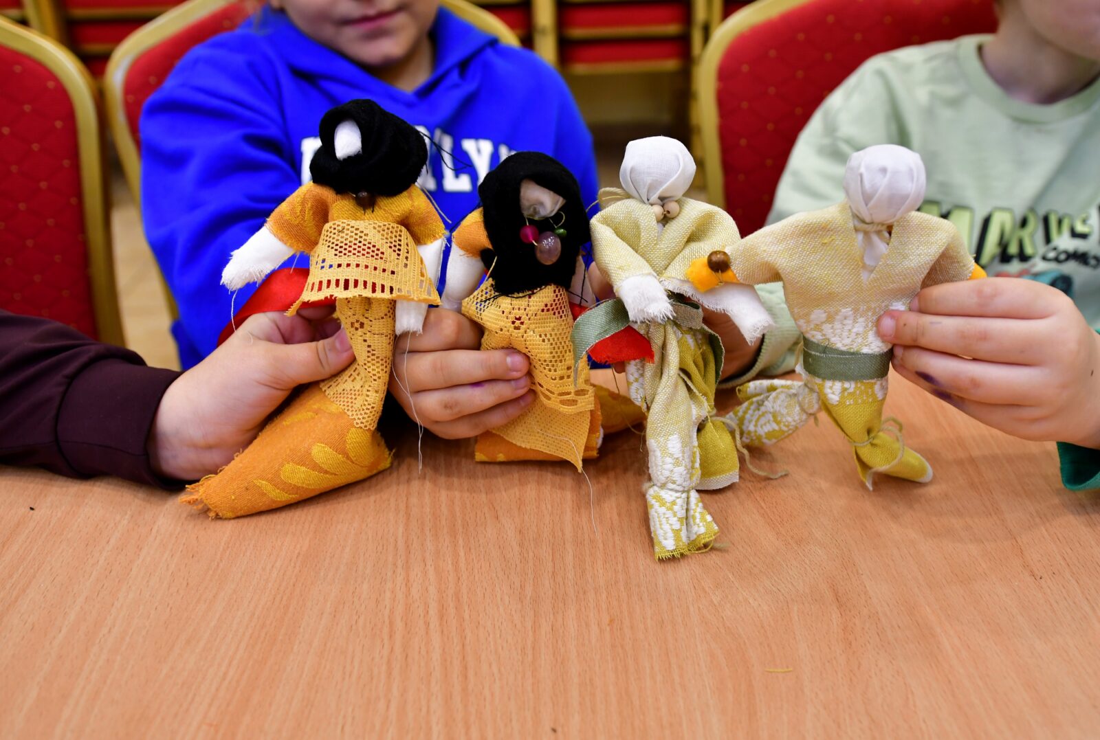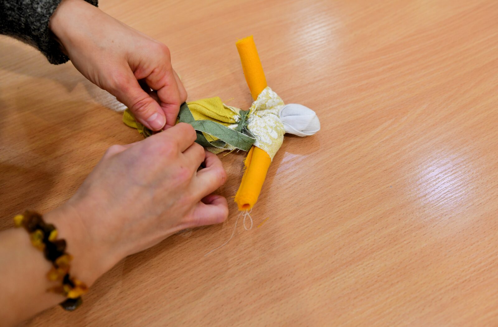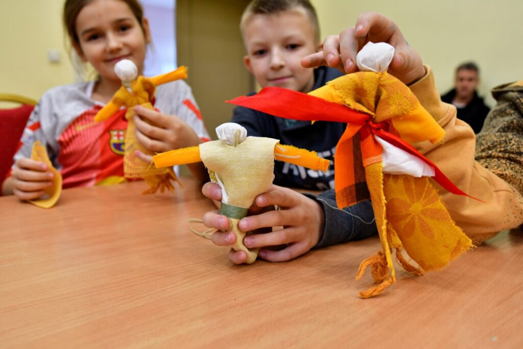 Podczas warsztatów przenieśliśmy się w świat sprzed lat – świat dzieciństwa bez telefonów, plastikowych zabawek i pośpiechu. Uczestnicy poznali historię lalki motanki – ręcznie tworzonej, symbolicznej towarzyszki dzieci i opiekunki domowego ogniska.