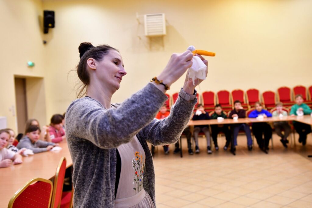 Czwartkowy poranek i przedpołudnie naszą instytucję wypełniła twórcza energia! Blisko 100 uczennic i uczniów ze Szkoła Podstawowa im. Wojska Polskiego w Lubiewie wzięło udział w wyjątkowych warsztatach tworzenia lalek motanek, prowadzonych przez Asię i Agnieszkę z Fundacja Brama Epok.