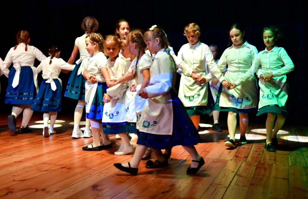 Następnie w części artystycznej mogliśmy podziwiać barwne i pełne energii występy Zespołu Pieśni i Tańca „Śliwiczanie”, które wprowadziły nas w niepowtarzalny klimat borowiackiej muzyki i tańca. Pani Jadzia natomiast opowiedziała o historii i dorobku kulturalnym zespołu „Frantówki Bysławskie”.