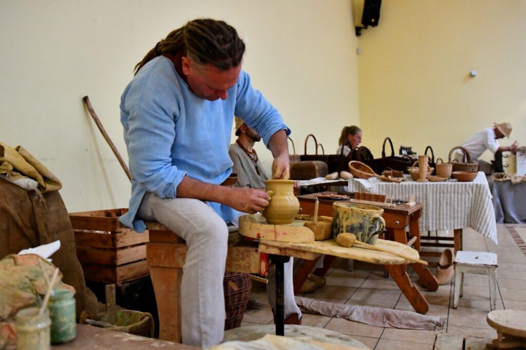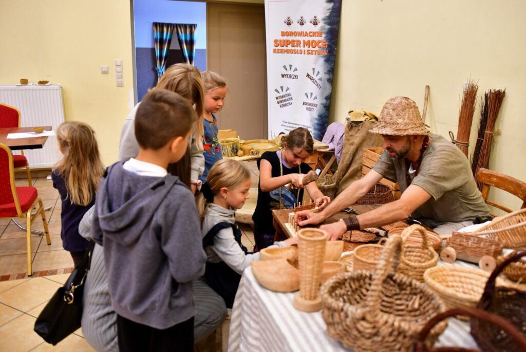 Punktem kulminacyjnym wydarzenia była wioska borowiackich rzemiosł – miejsce, w którym tradycja ożyła na naszych oczach! Uczestnicy mieli okazję spróbować swoich sił w dawnych profesjach: