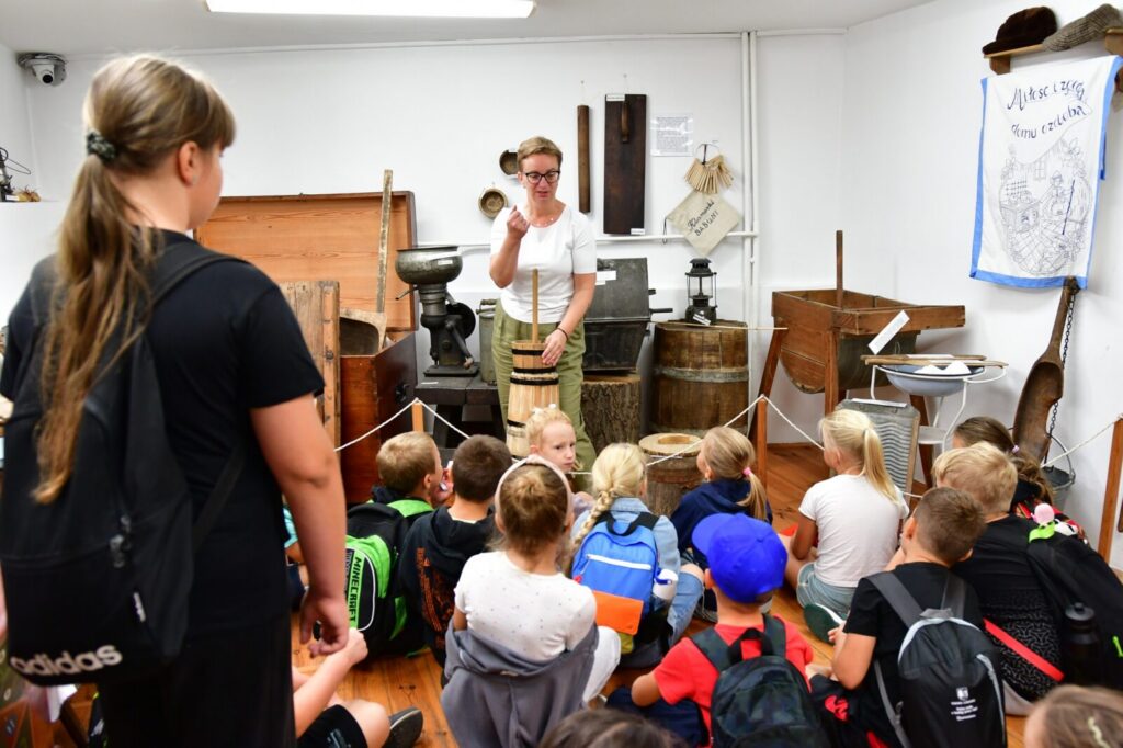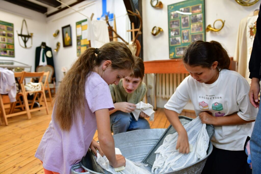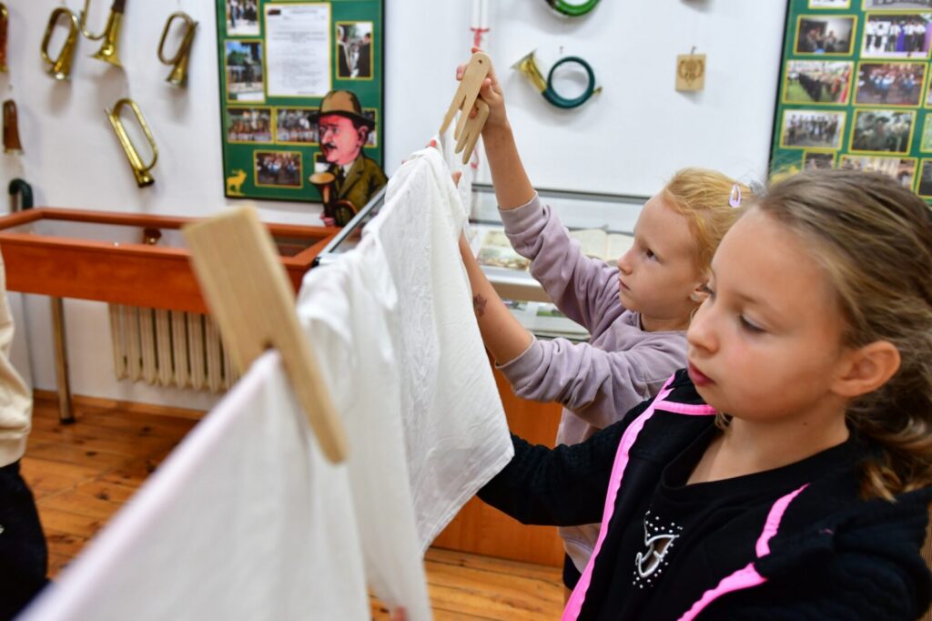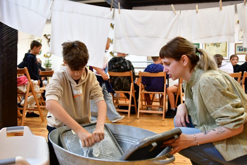 Najwięcej emocji wzbudziły warsztaty prania na tarze – z prawdziwym szorowaniem, płukaniem i wieszaniem prania. To była wyjątkowa lekcja historii, która pozwoliła nam poczuć, jak wyglądała codzienność naszych przodków.