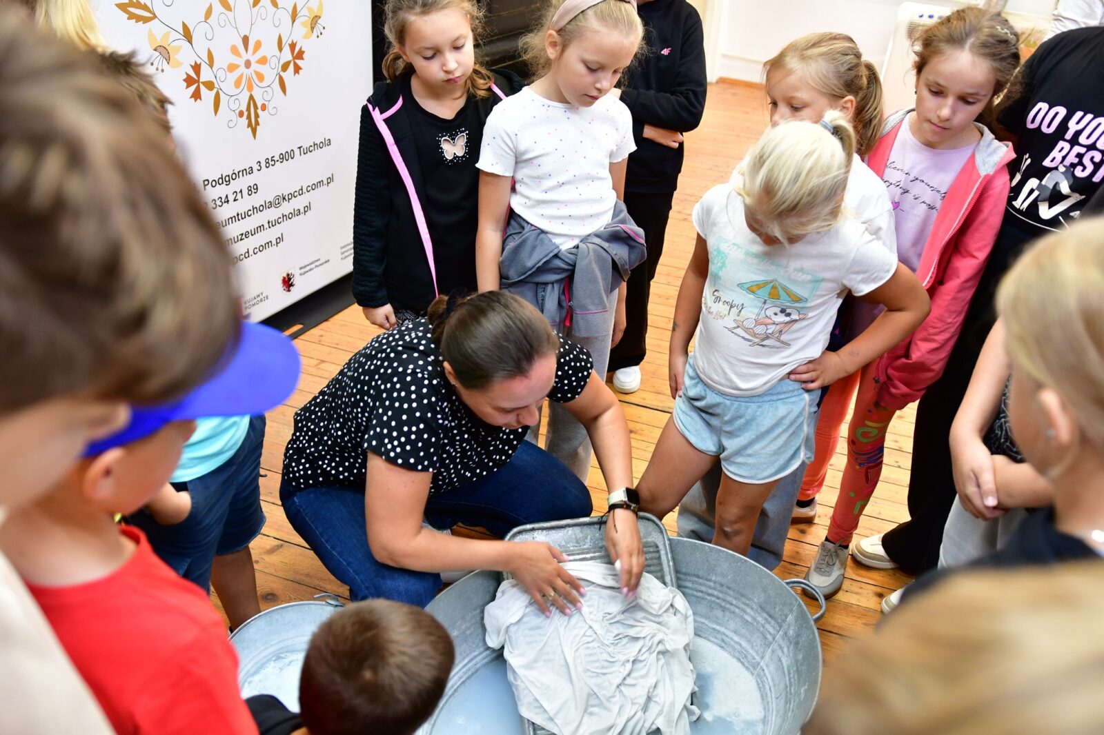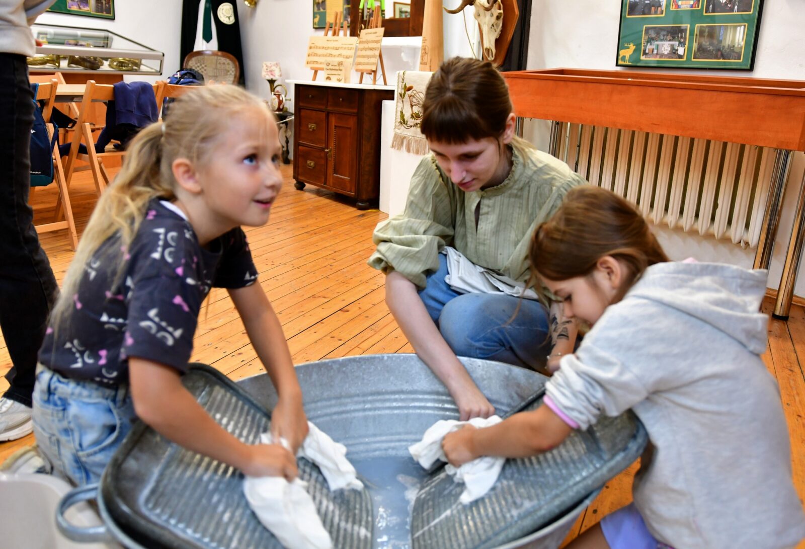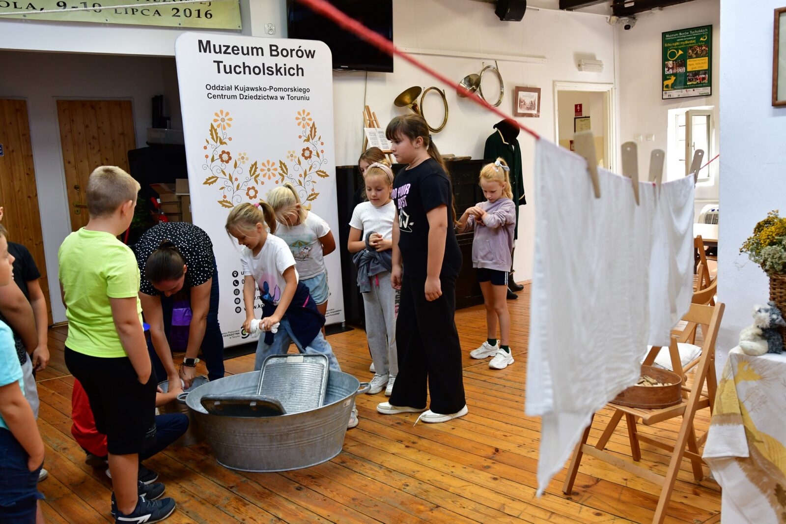 Najwięcej emocji wzbudziły warsztaty prania na tarze – z prawdziwym szorowaniem, płukaniem i wieszaniem prania. To była wyjątkowa lekcja historii, która pozwoliła nam poczuć, jak wyglądała codzienność naszych przodków.