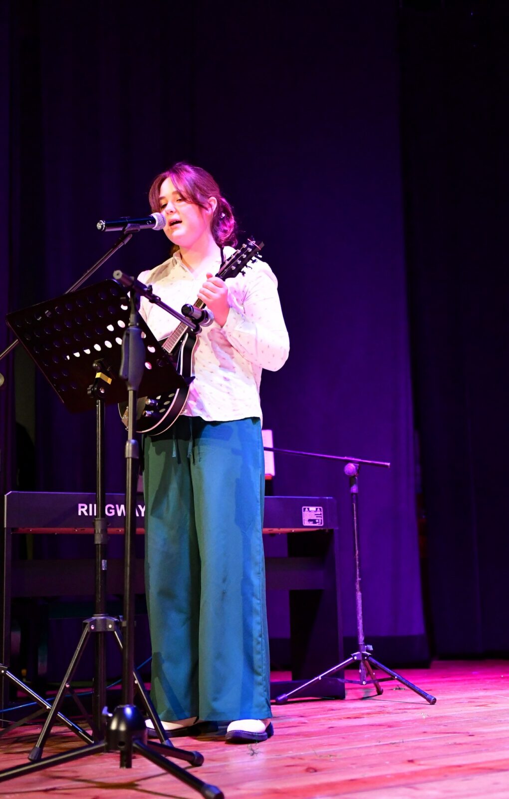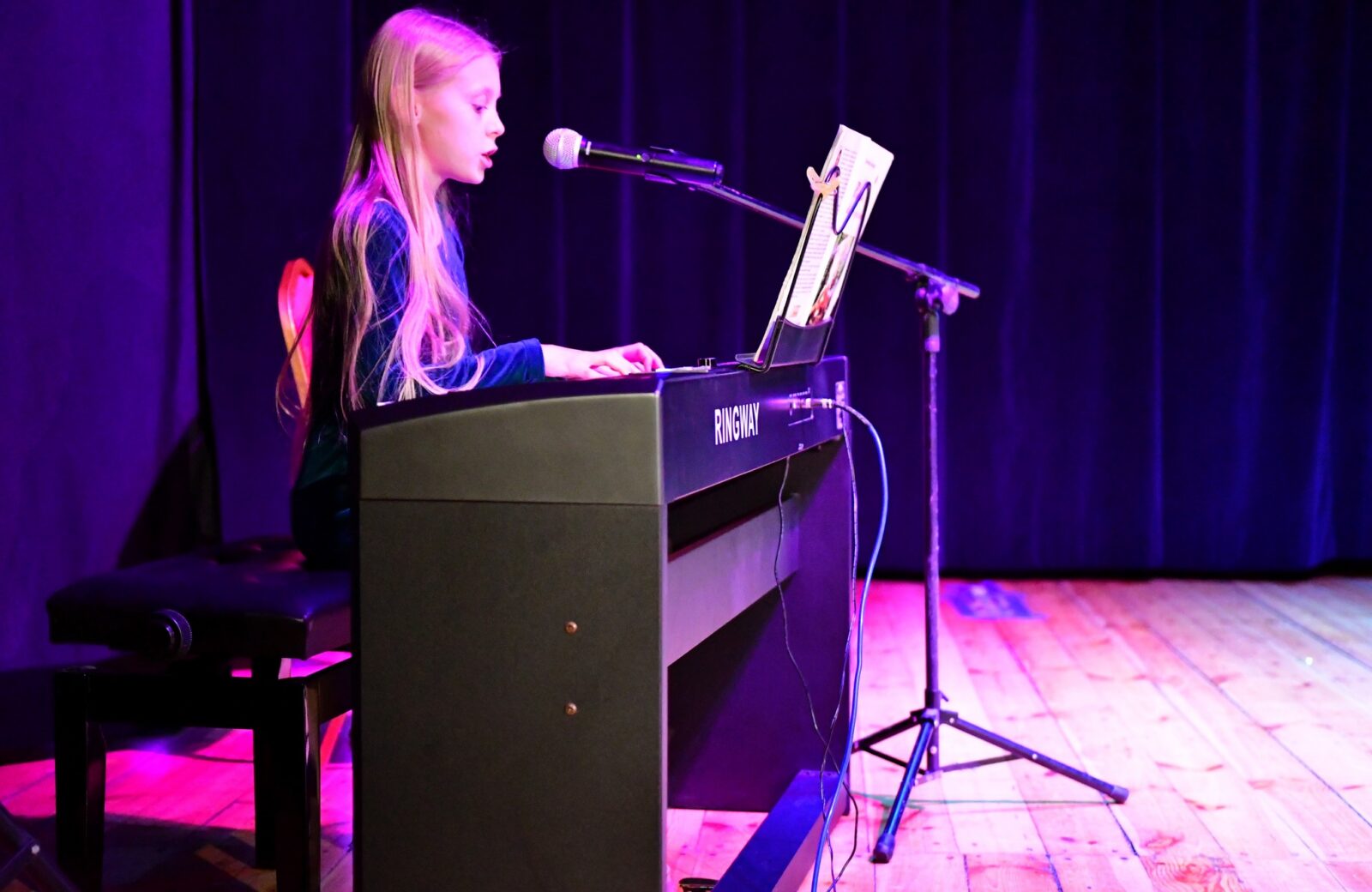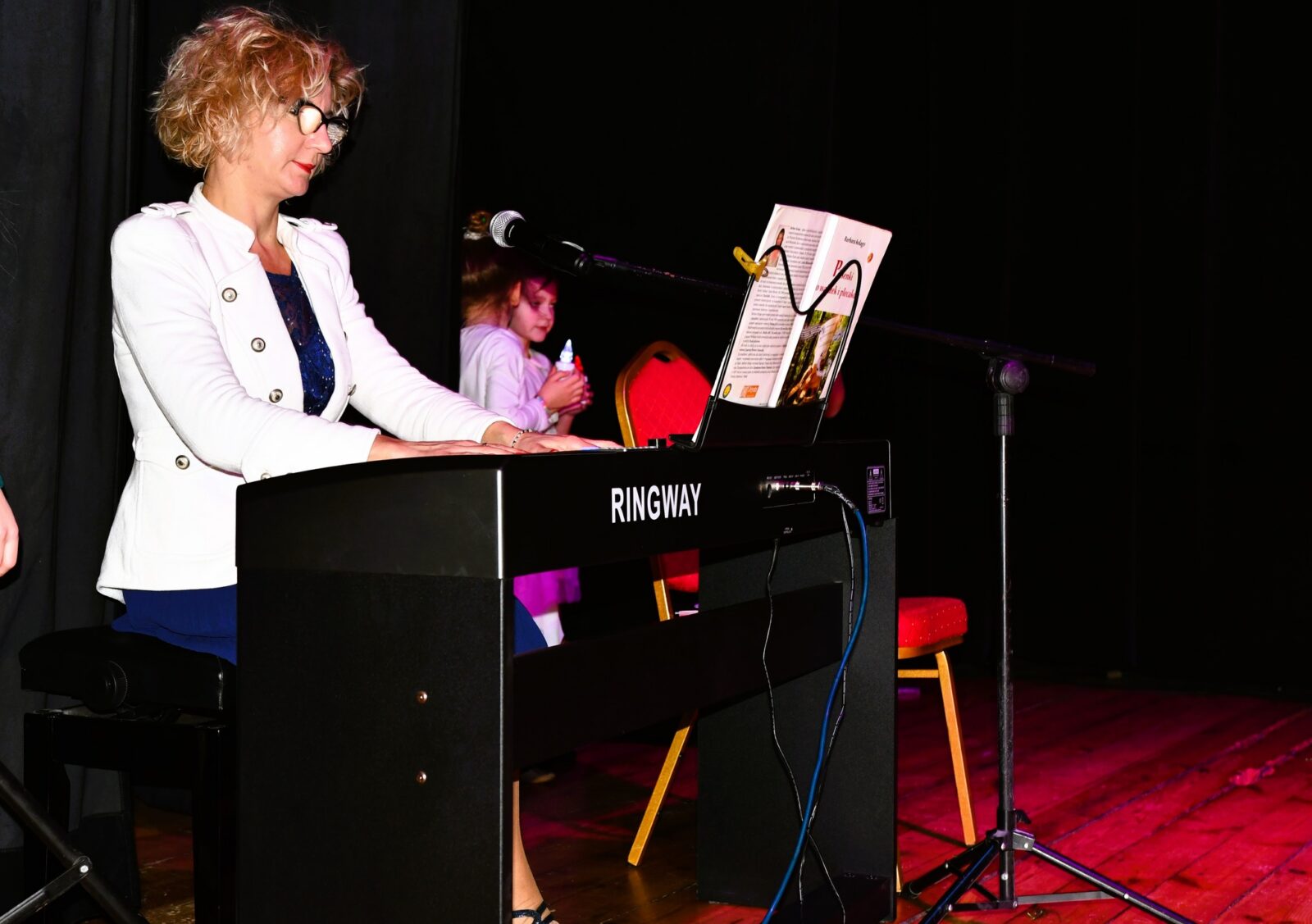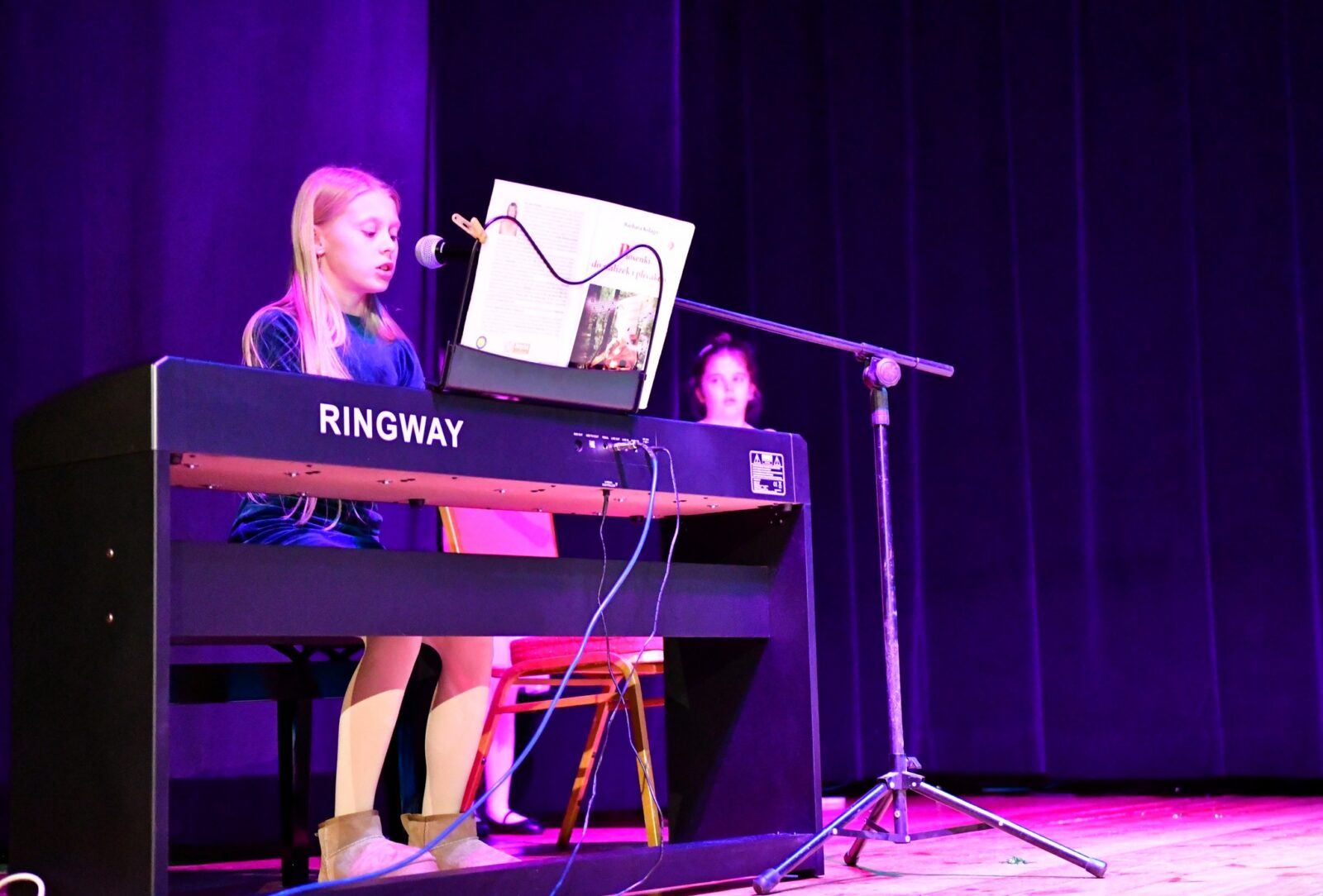- Gościnnie na naszej scenie wystąpiła również Rozalia – młoda artystka o wielu muzycznych talentach. Pod opieką Joanna Urbańska uczy się gry na pianinie, ale to nie wszystko – Rozalia gra także na flecie poprzecznym i pięknie śpiewa, czym dzisiaj nas oczarowała.