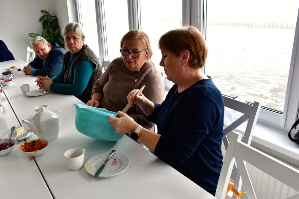 Seniorzy i seniorki z wielkim zaangażowaniem podzielili się zadaniami, dzięki czemu wszystko przebiegło bardzo sprawnie.