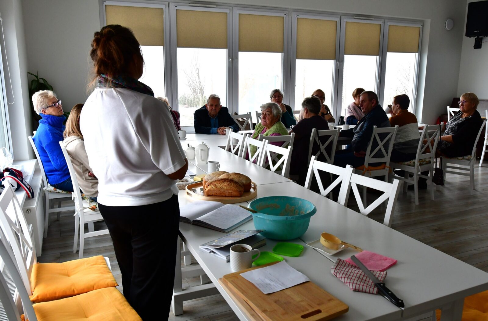 W poniedziałek 1 grudnia 2025 w Klubie Seniora pachniało świeżo upieczonym chlebem, a to za sprawą wyjątkowych warsztatów pieczenia chleba, które poprowadziła pani Roma – na co dzień wraz z mężem prowadząca gospodarstwo ekologiczne. A jak ekologiczne gospodarstwo, to i ekologiczne składniki!