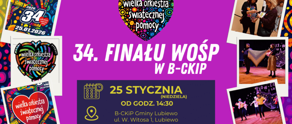 34. FINAŁ WOŚP w B-CKiP w Lubiewie już za tydzień!!!
