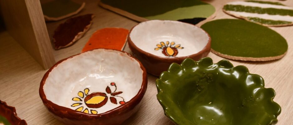 Zadaniem uczestniczek i uczestnika warsztatów było szkliwienie przygotowanych naczyń oraz wykonanie