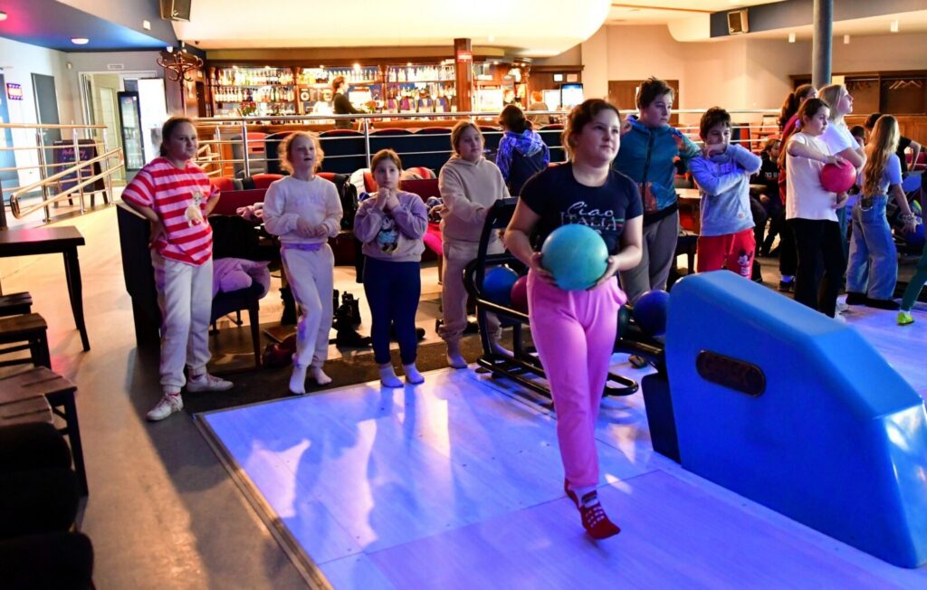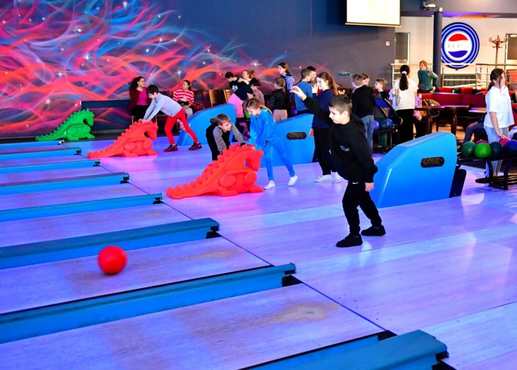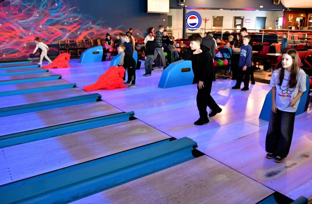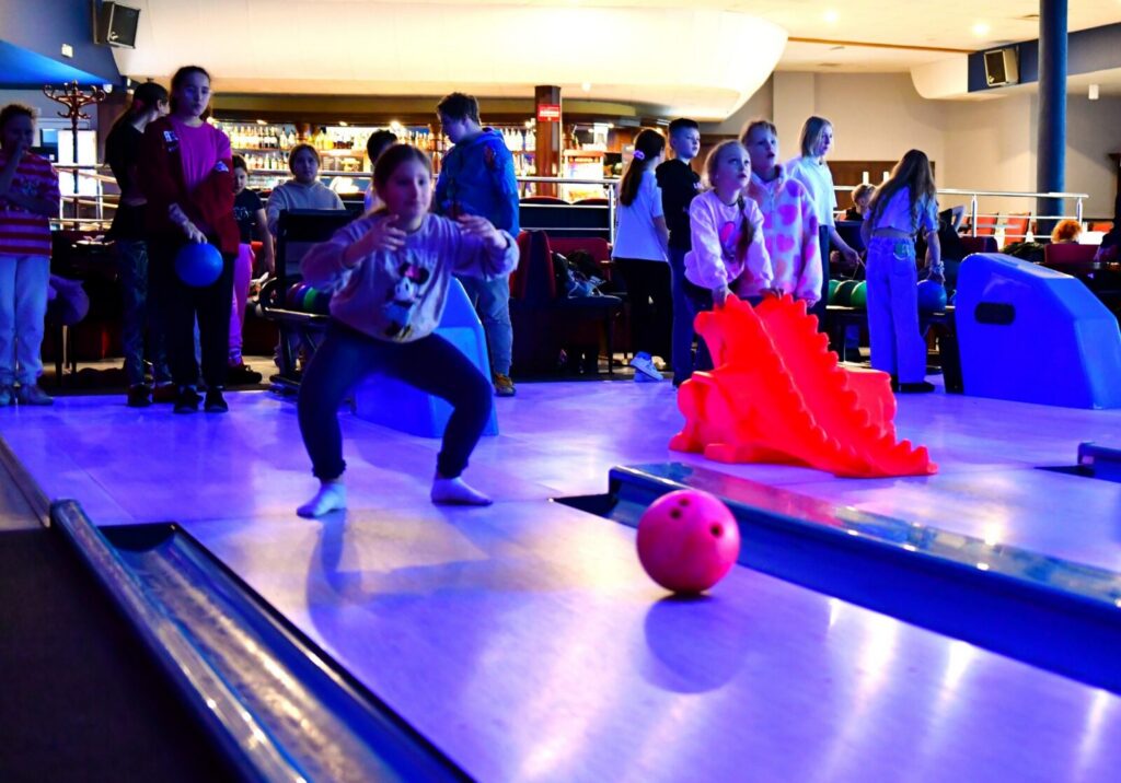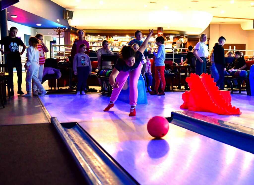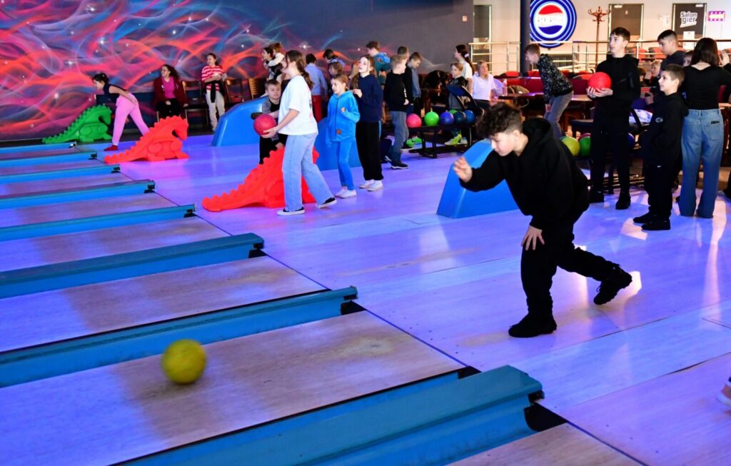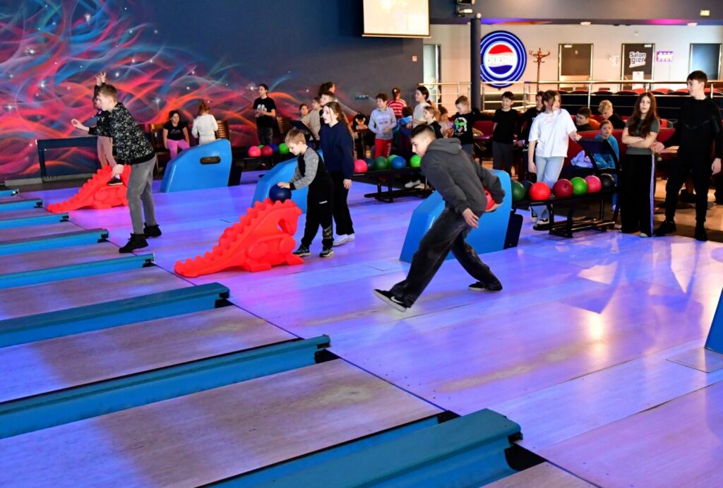Drugim przystankiem na naszej mapie była Kręgielnia Mistral w Chojnicach. Tam podzieliliśmy się na drużyny i rozpoczęła się gra pełna emocji! By zdobyć jak najwięcej punktów – techniki gry były naprawdę różnorodne i kreatywne: rzuty z wykorzystaniem specjalnych „smoków”, delikatne kulanie z przykucu, rzut z lekkim rozbiegiem, kulnięcie z rozkroku… Każdemu rzutowi towarzyszyła chwila napięcia, a potem – wybuch radości, gdy na tablicy pojawiały się kolejne punkty!