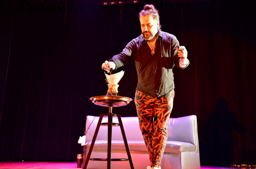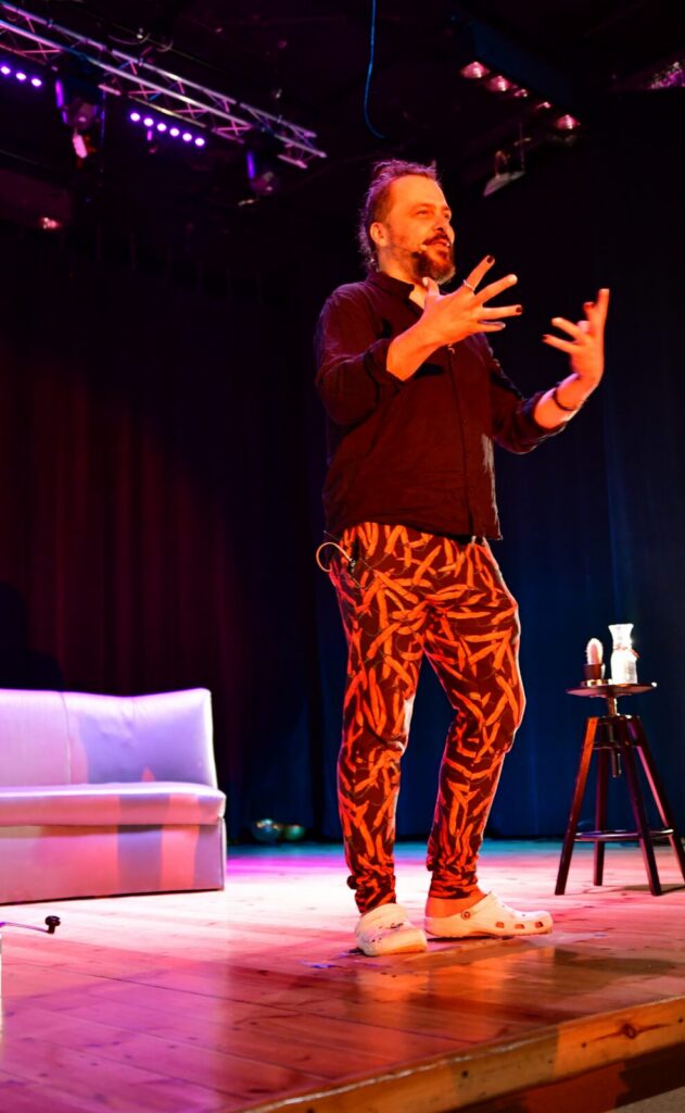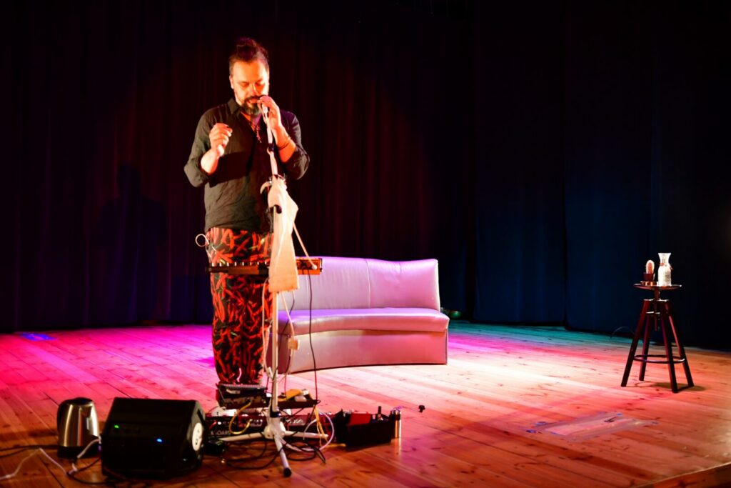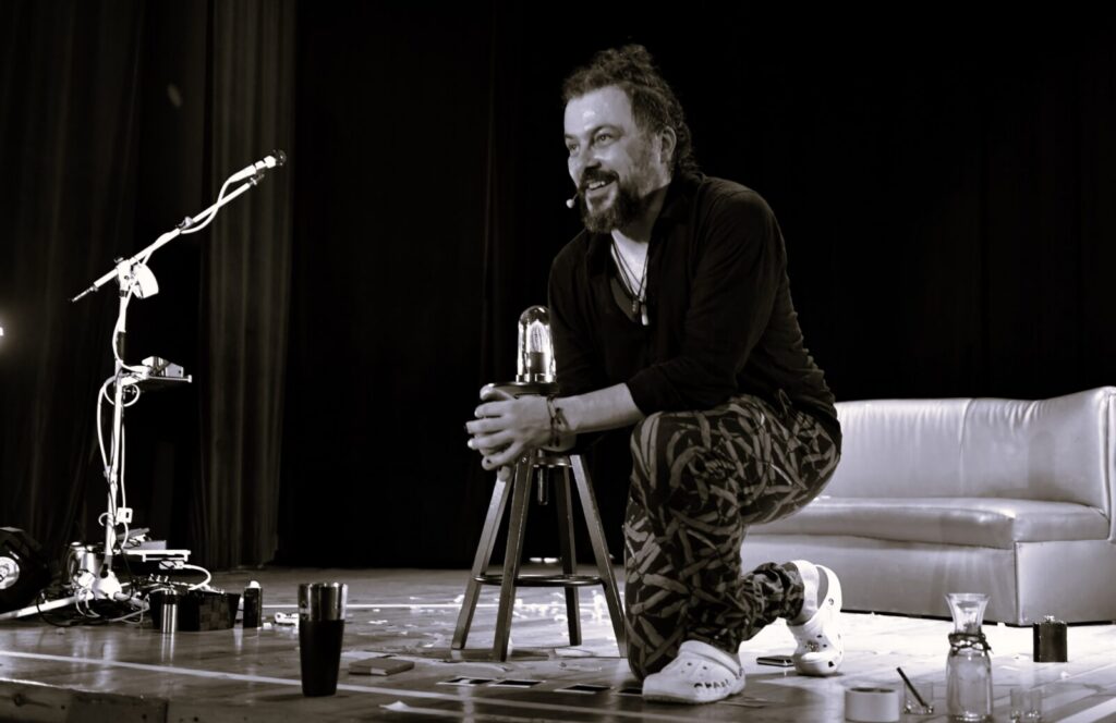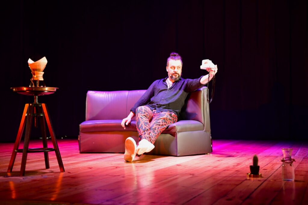 Spektakl „Kawaler” w wykonaniu pjotera – Piotra Chlipalskiego okazał się doświadczeniem zupełnie innym niż wszystkie, które dotąd gościliśmy w naszym domu kultury. Choć zapowiadany jako solowy storytelling, w praktyce… trudno było mówić o występie jednoosobowym. Piotr od pierwszych minut zaprosił naszą publiczność do współtworzenia teatralnej przestrzeni – i to nie symbolicznie, lecz dosłownie.