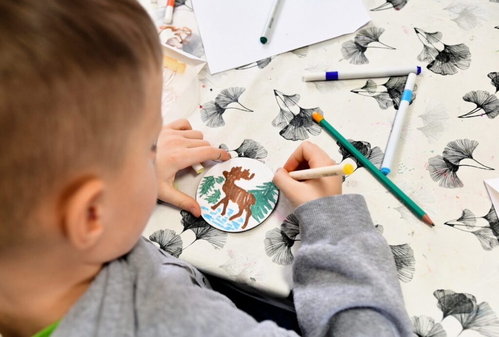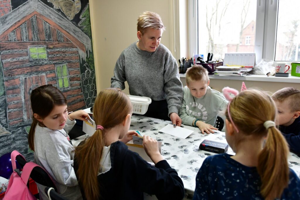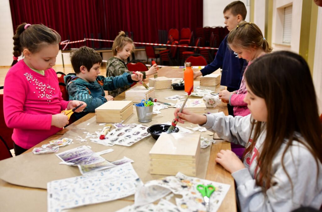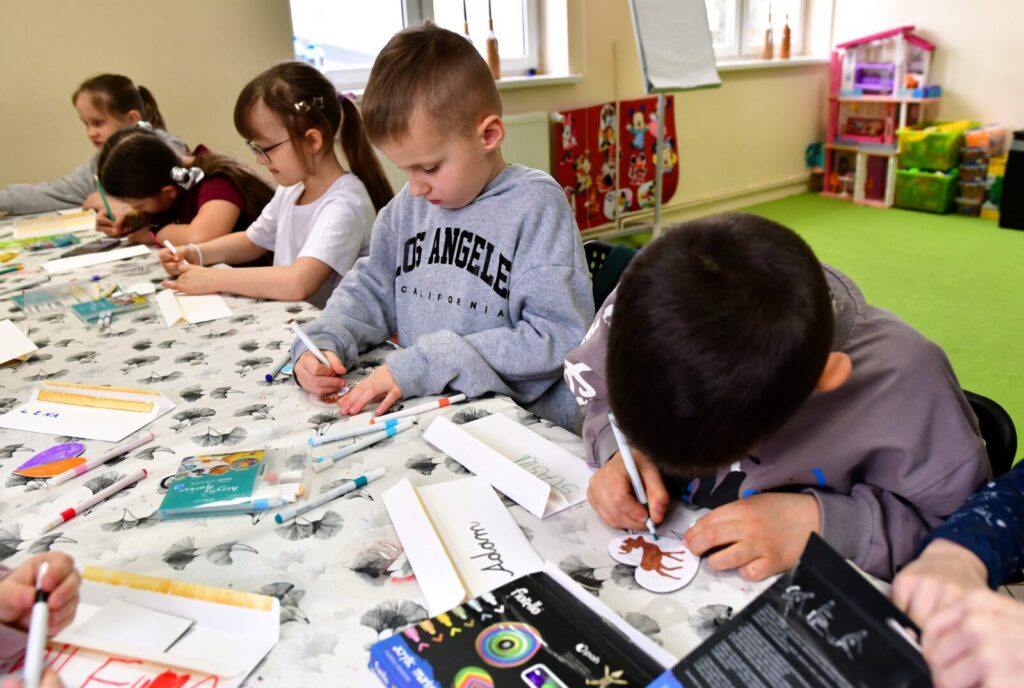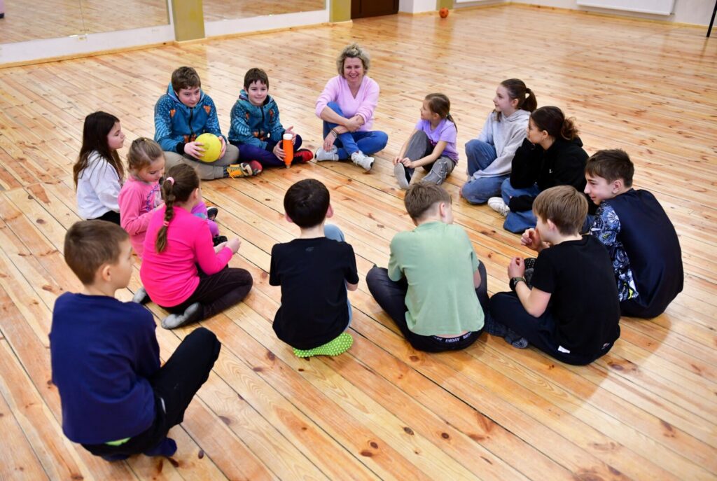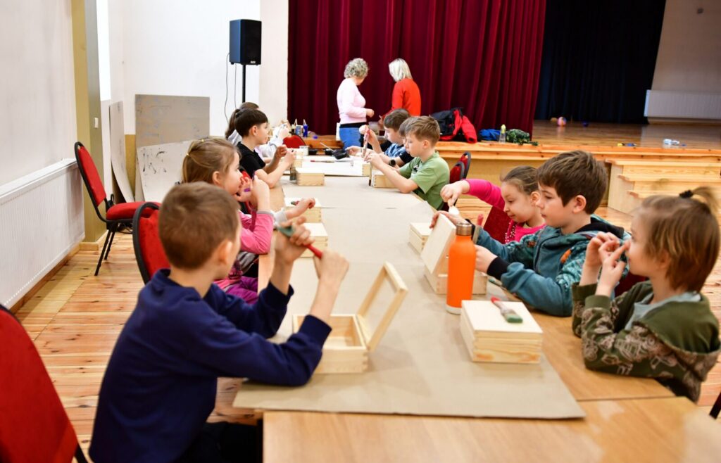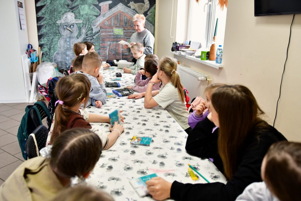Tutaj nie brakowało ruchu i dobrej zabawy! Dużą dawkę energii przyniosła gra w „prawdę czy wyzwanie”, która nie tylko rozruszała uczestników i uczestniczki, ale też świetnie zintegrowała grupę. W części twórczej dzieci ozdabiały drewniane skrzynki papierem ryżowym – powstały wyjątkowe miejsca do przechowywania małych (i dużych!) skarbów. Zajęcia w Bysławiu prowadzą niezawodne panie Bogusia i Halinka.
