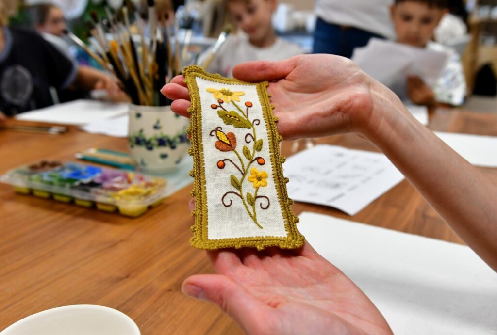Uczestniczki i uczestnicy wycieczki poznali tajniki procesu powstawania naczyń ceramicznych, dowiadując się, jak glina zmienia się w prawdziwe dzieło sztuki. To była też świetna okazja, by poszerzyć wiedzę o lokalnym rzemiośle. Zgłębiliśmy fascynującą historię haftu, odkrywając podobieństwa i różnice między haftem kauszbskim a borowiackim. Poznaliśmy też ciekawe fakty na temat borowiackiej i kaszubskiej sztuki użytkowej.