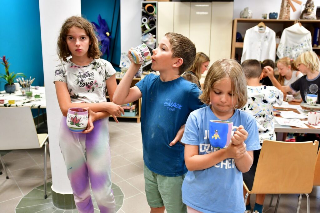 Po skończonym zdobieniu, z dumą szkliwiliśmy nasze małe dzieła, które teraz trafią do pieca rozgrzanego do 1200 stopni. Z niecierpliwością czekamy na efekty!