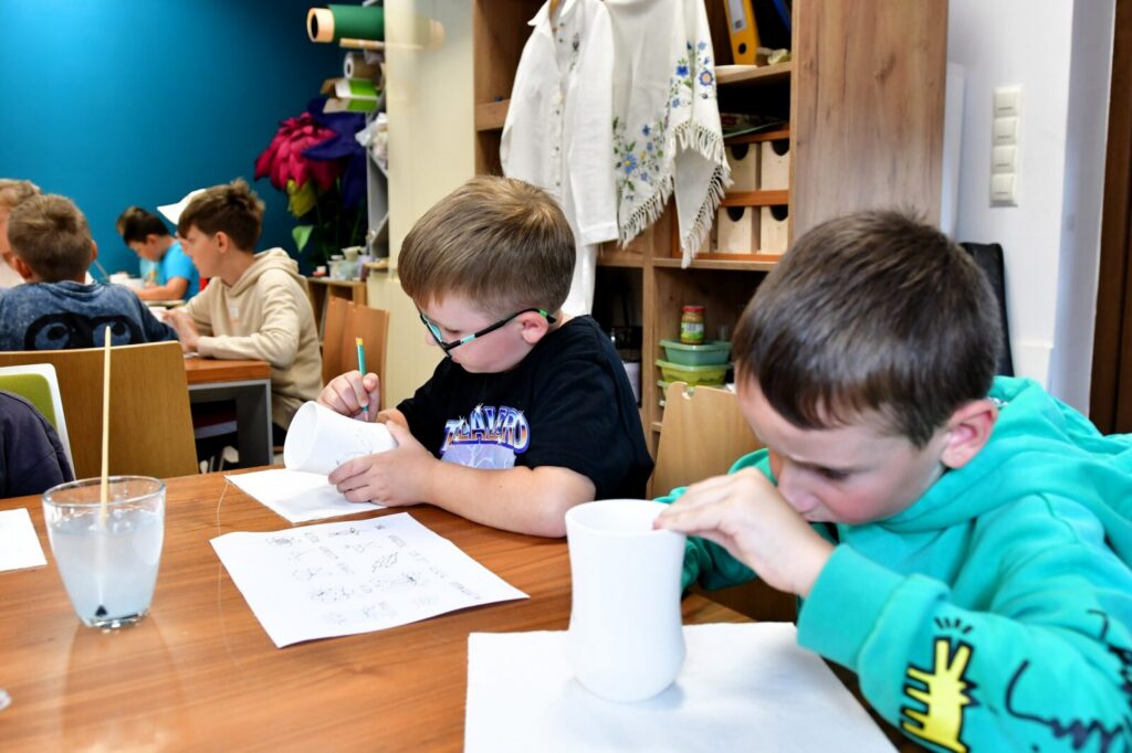 Największe emocje wzbudził moment, w którym sami mogliśmy przenieść tradycję na współczesne formy. Inspirując się lokalnymi wzorami, przystąpiliśmy do zdobienia własnych kubków. I choć proces ten okazał się żmudny i wymagający precyzji, efekty są naprawdę imponujące! Zdobienie wciągnęło nas bez reszty, a każdy kubek stał się unikalnym odzwierciedleniem kreatywności i cierpliwości.