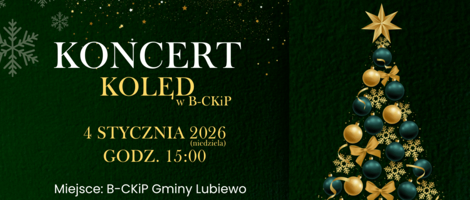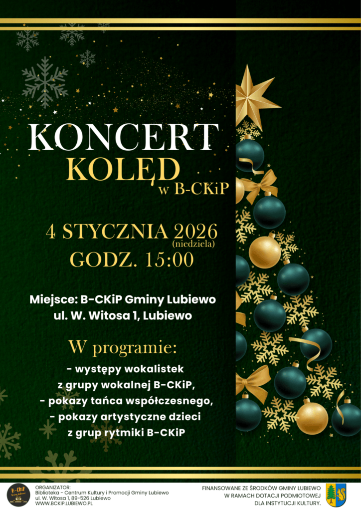 Już w niedzielę, 4 stycznia o godz. 15:00 zapraszamy wszystkich miłośników świątecznej atmosfery do B-CKiP przy ul. W. Witosa 1 w Lubiewie.