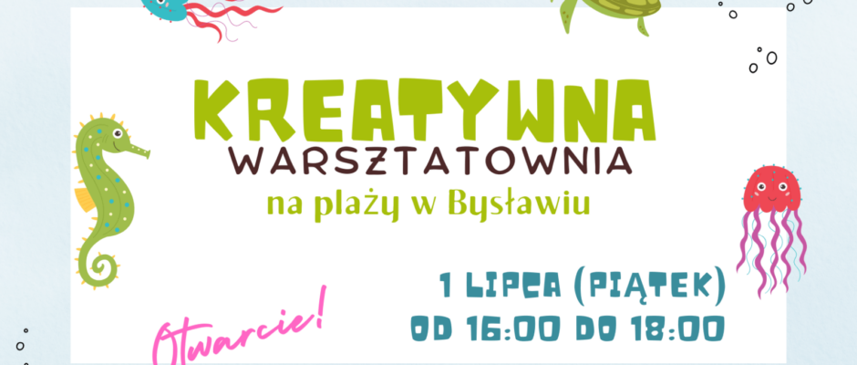 Już w piątek 1 lipca od godz. 16:00 otwieramy KREATYWNE WARSZTATOWNIE na plaży w Bysławiu.