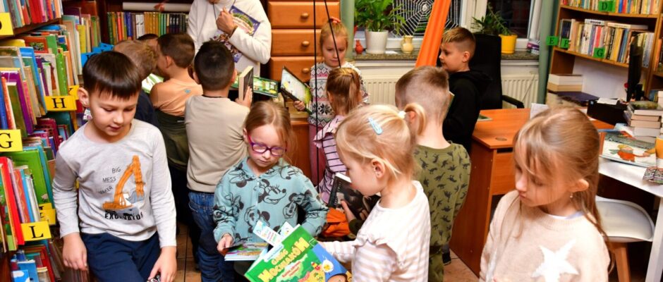 Lekcja biblioteczne dla klas O i 1 w bibliotece w Lubiewie