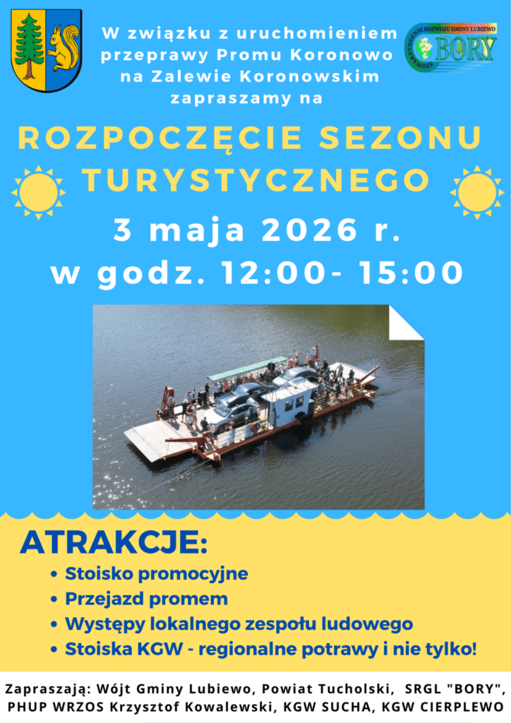 3 maja | Rozpoczęcie sezonu turystycznego przy przeprawie promowej nad Zalewem Koronowskim