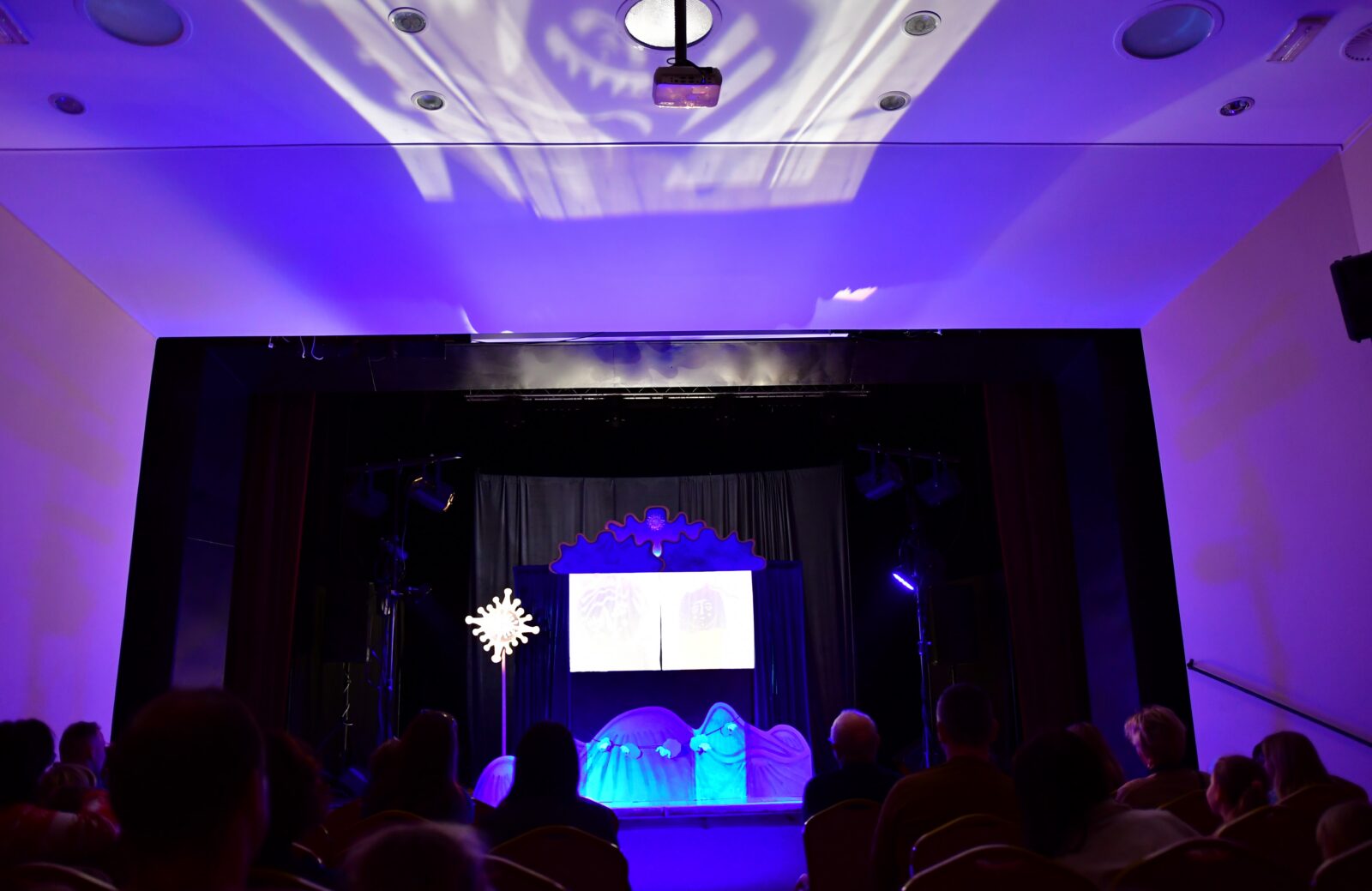 Wspólnie wróciliśmy do bożonarodzeniowej historii, a kolędy śpiewane razem z aktorami wypełniły salę wyjątkową atmosferą. Najmłodsi widzowie z ogromną ciekawością podchodzili niemal pod samą scenę, by z bliska przyjrzeć się misternym formom i detalom, które snuły tę niezwykłą opowieść.