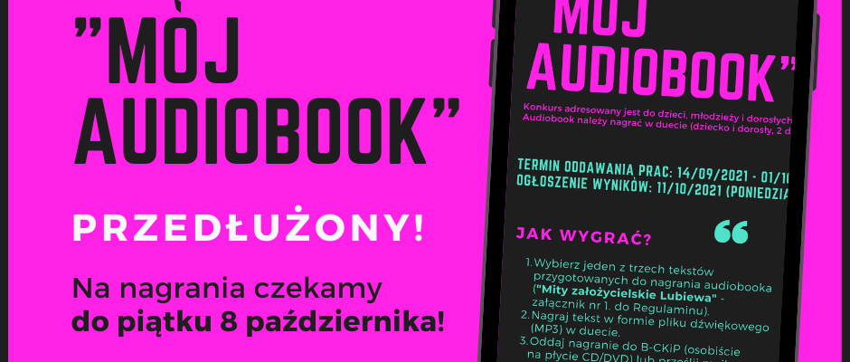 Biblioteka – Centrum Kultury i Promocji Gminy Lubiewo ogłasza konkurs czytelniczy „Mój audiobook”.