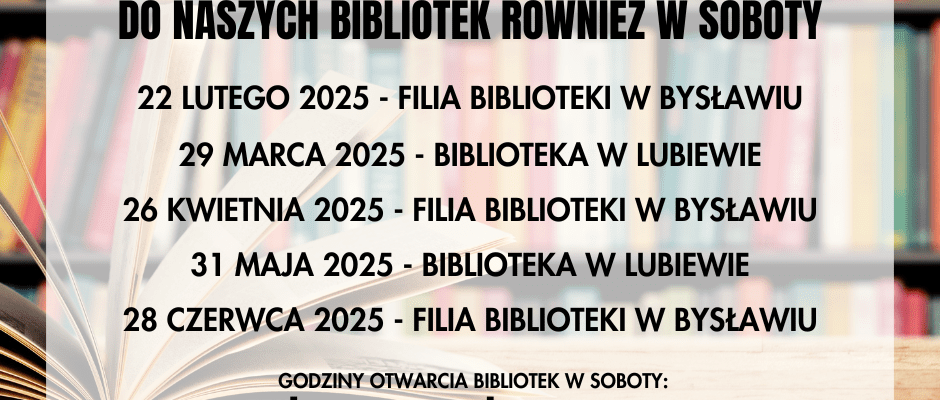 Serdecznie zapraszamy do naszych bibliotek również w ostatnie soboty danego miesiąca!