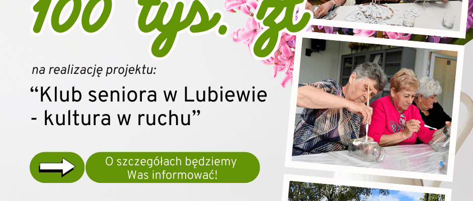 Otrzymaliśmy 100 tys. zł na realizację projektu: „Klub seniora w Lubiewie – kultura w ruchu”!