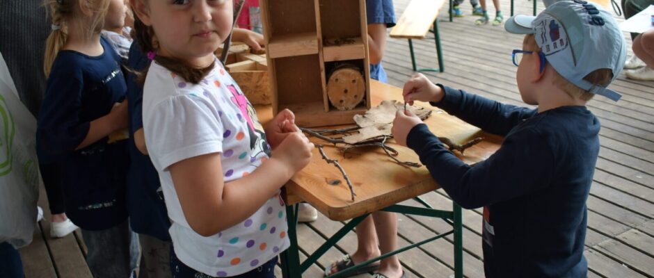 Po sporej dawce wiedzy na temat dzikich zapylaczy dzieci razem z rodzicami wykonali domki dla owadów, które zabrały do swoich ogrodów. Dopełnieniem były warsztaty pszczelarskie. Dzieci miały okazję poznać budowę ula, a także przyjrzeć się akcesoriom pszczelarskim. Dowiedziały się również wielu ciekawostek o pracowitych pszczołach.