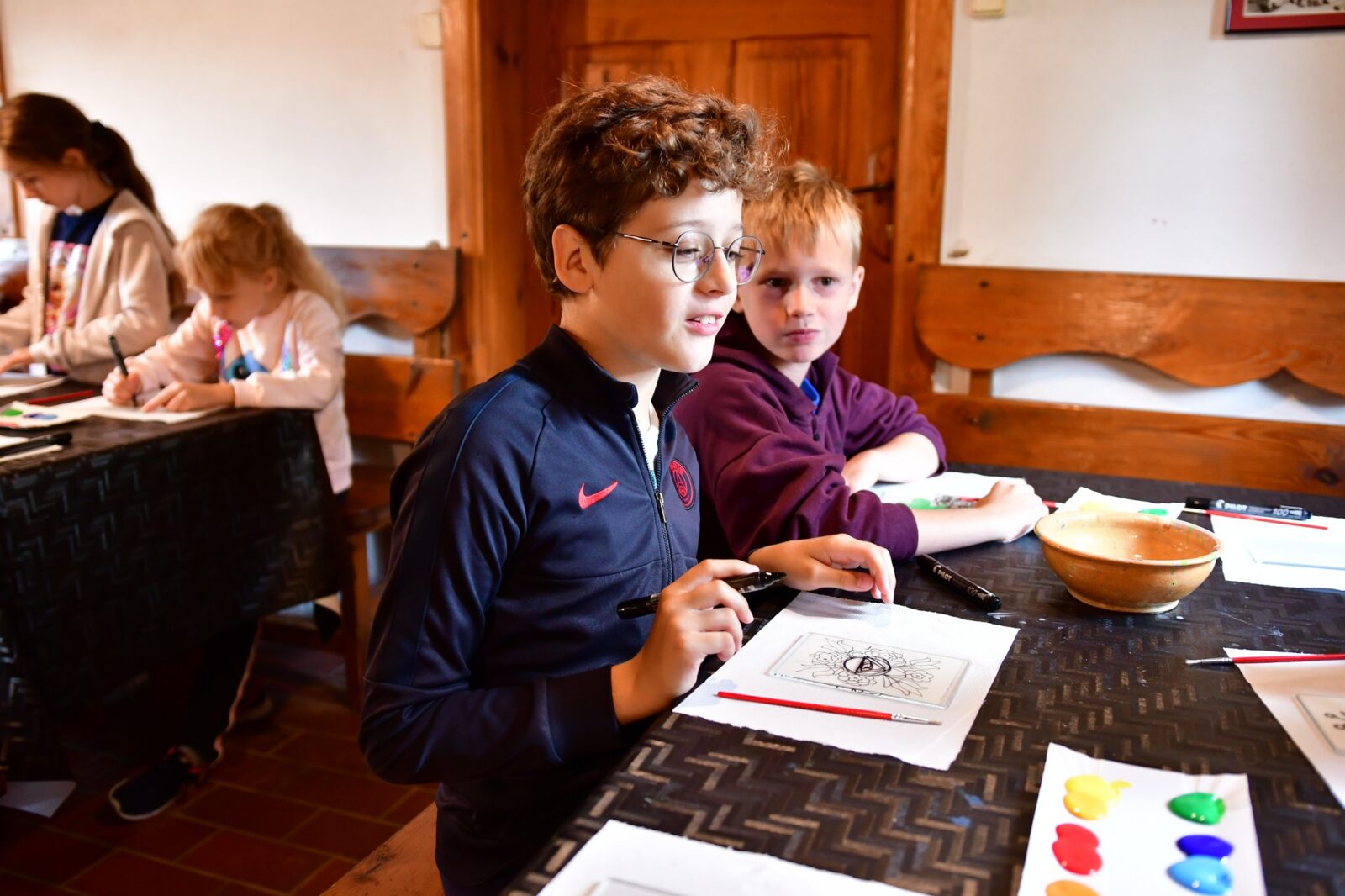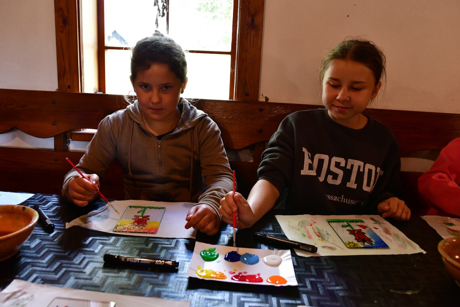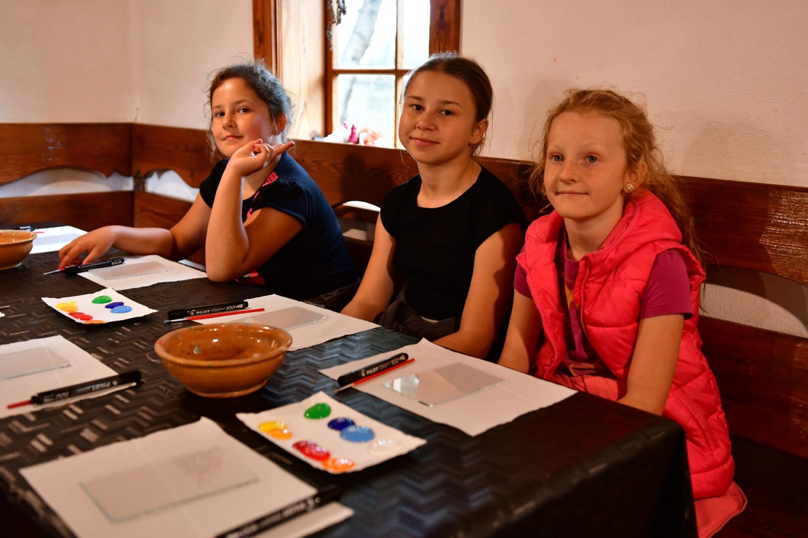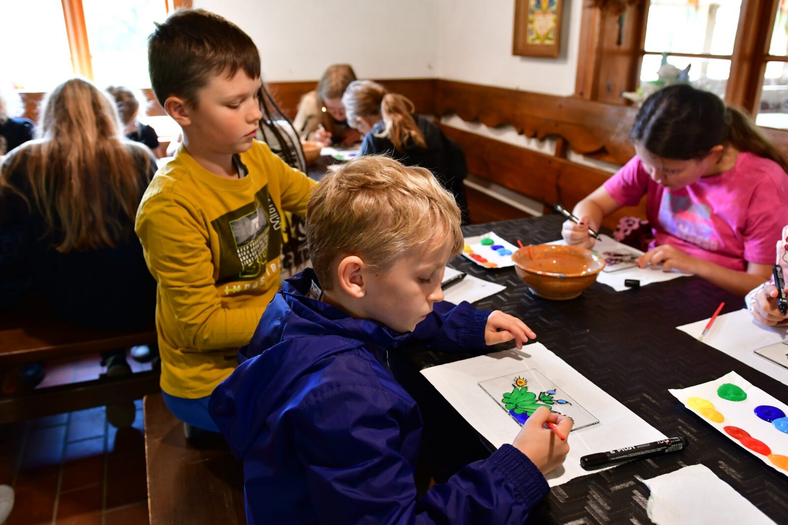 Największą frajdę sprawiły nam warsztaty malowania na szkle, inspirowane tradycyjnym haftem i kolorystyką kaszubską. Powstały przepiękne, barwne dzieła, w których widać mnóstwo serca i dziecięcej wyobraźni!