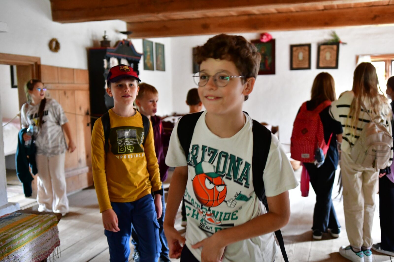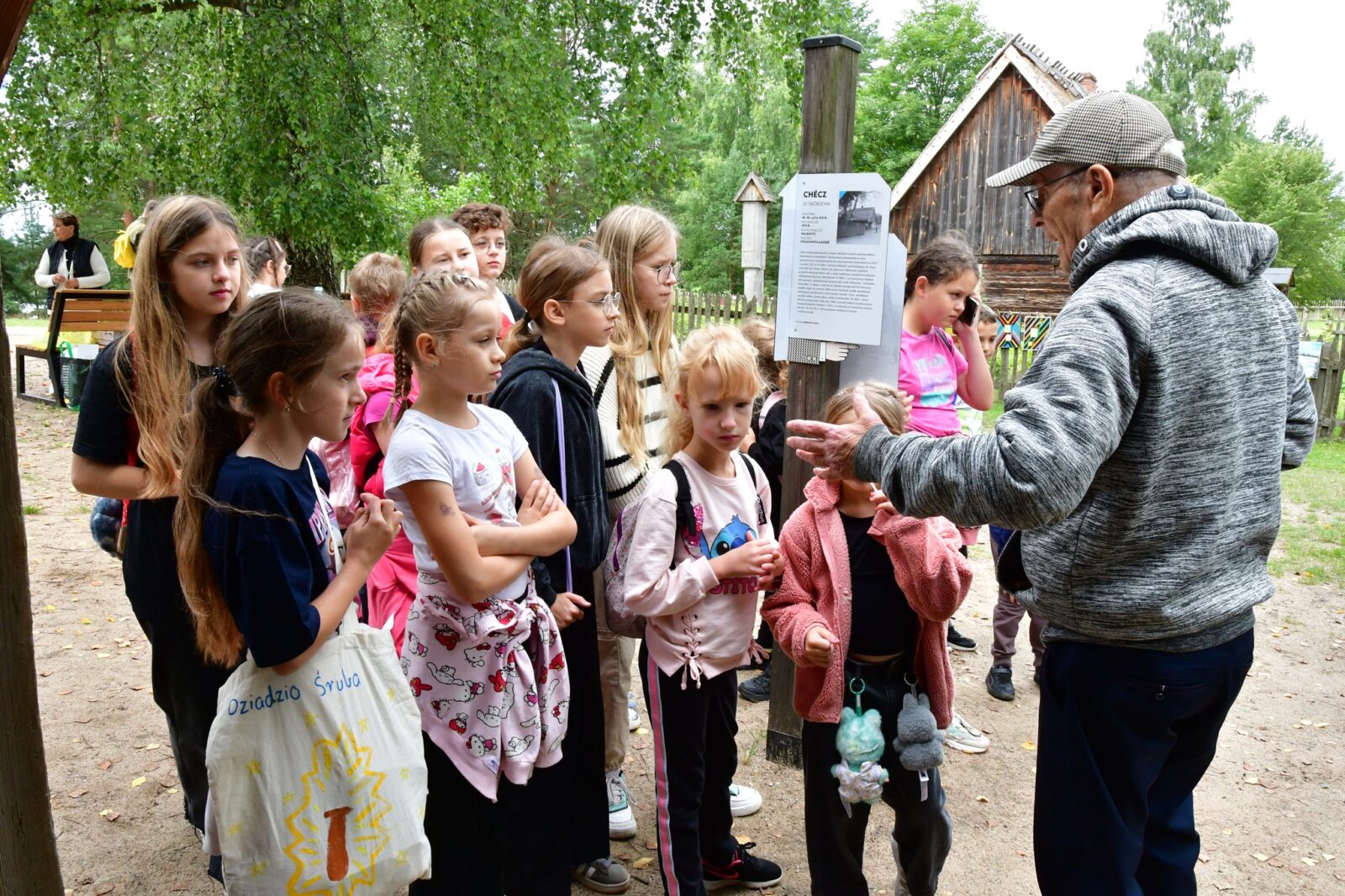 Dzieci zwiedzały urokliwe, stare chaty i podziwiały życie sprzed lat. To była prawdziwa lekcja historii na świeżym powietrzu!