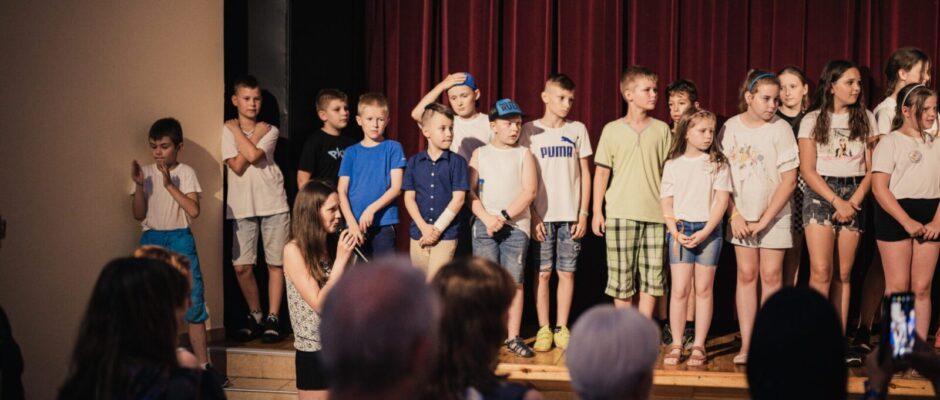 FINAŁ III edycji lata w teatrze w Lubiewie miał miejsce w piątek 16 lipca o godz. 18:00! Uczestniczyło w nim blisko 120 osób. Dom kultury zmienił się w wielką galerię, w której zaprezentowane zostały dzieła młodych twórców z gminy Lubiewo, będące efektem dwutygodniowych półkolonii w ramach programu lato w teatrze. Uczestnicy i Uczestniczki lata w teatrze wcielili się w rolę przewodników po galerii sztuki, a także prezentowali napisane mity, czy też sensoryczną opowieść. Publiczność została podzielona na 5 grup i wyruszyła w podróż za swoimi przewodnikami. Goście latoteatralnej galerii sztuki mogli nie tylko obejrzeć efekty artystycznych działań, ale także podzielić się swoimi refleksjami i zapisać je w sali refleksyjnej.
