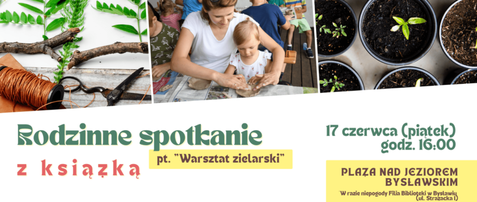 *W razie niepogody „Rodzinne spotkanie z książką” odbędzie się w Filii Biblioteki w Bysławiu (ul. Strażacka 1).