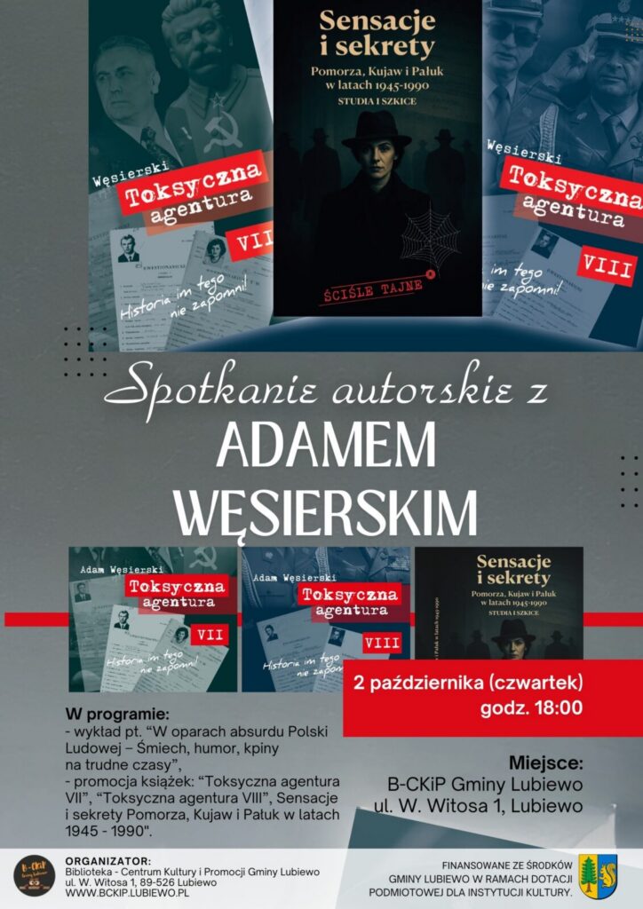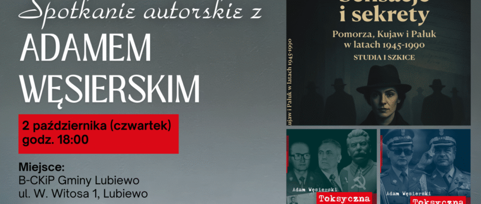 Już w czwartek, 2 października 2025 r. o godz. 18:00 w Bibliotece – Centrum Kultury i Promocji Gminy Lubiewo wyjątkowy wykład i prezentacja książek Adama Węsierskiego: