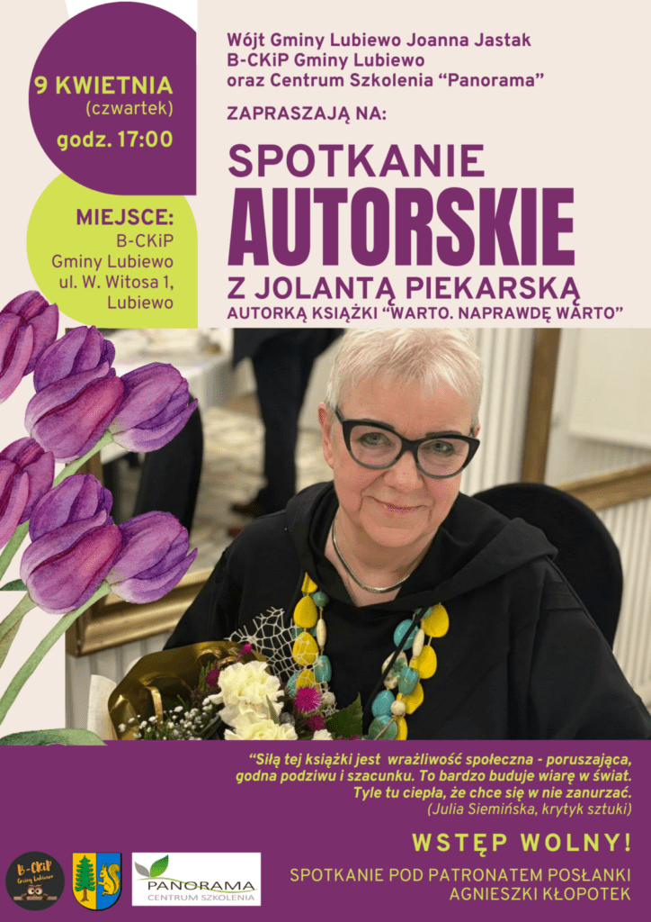 serdecznie zapraszają na wyjątkowe spotkanie autorskie z Jolantą Piekarską, autorką poruszającej książki „Warto. Naprawdę warto”.