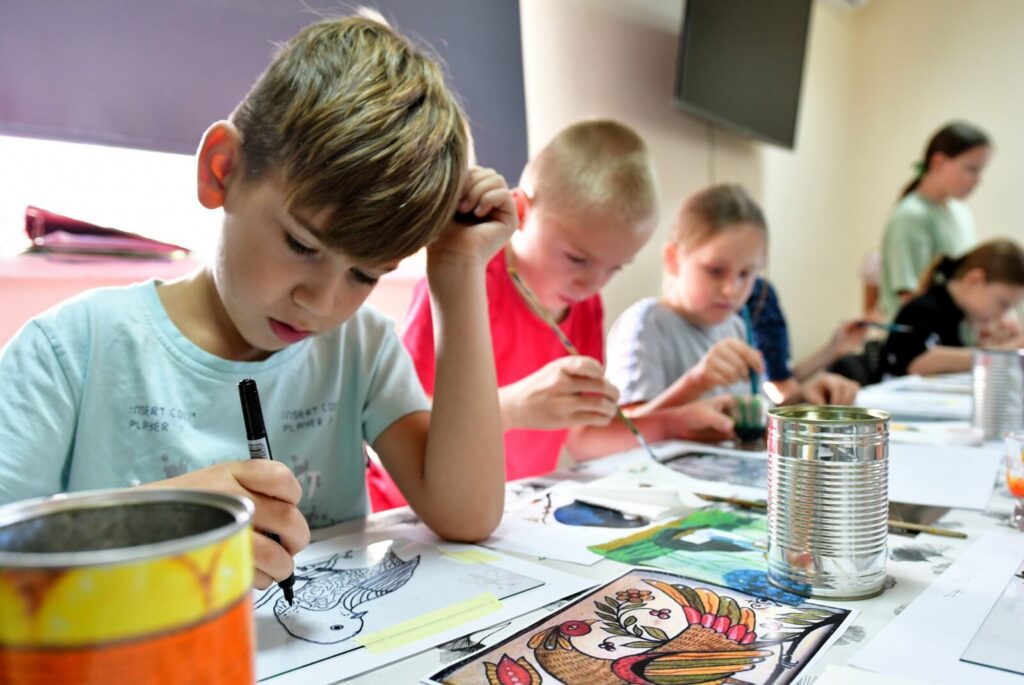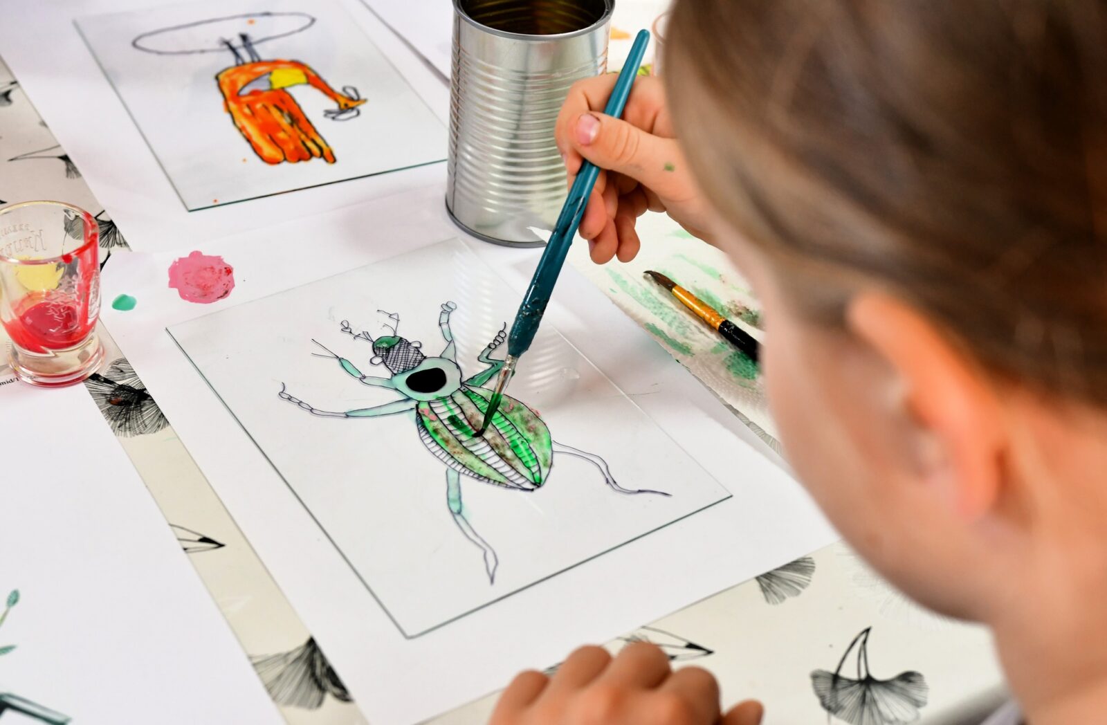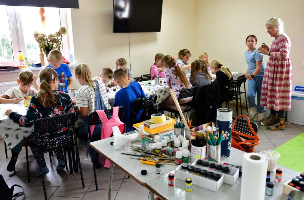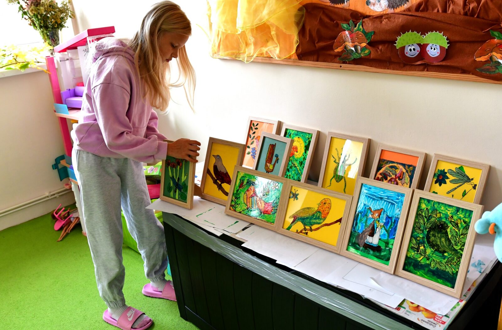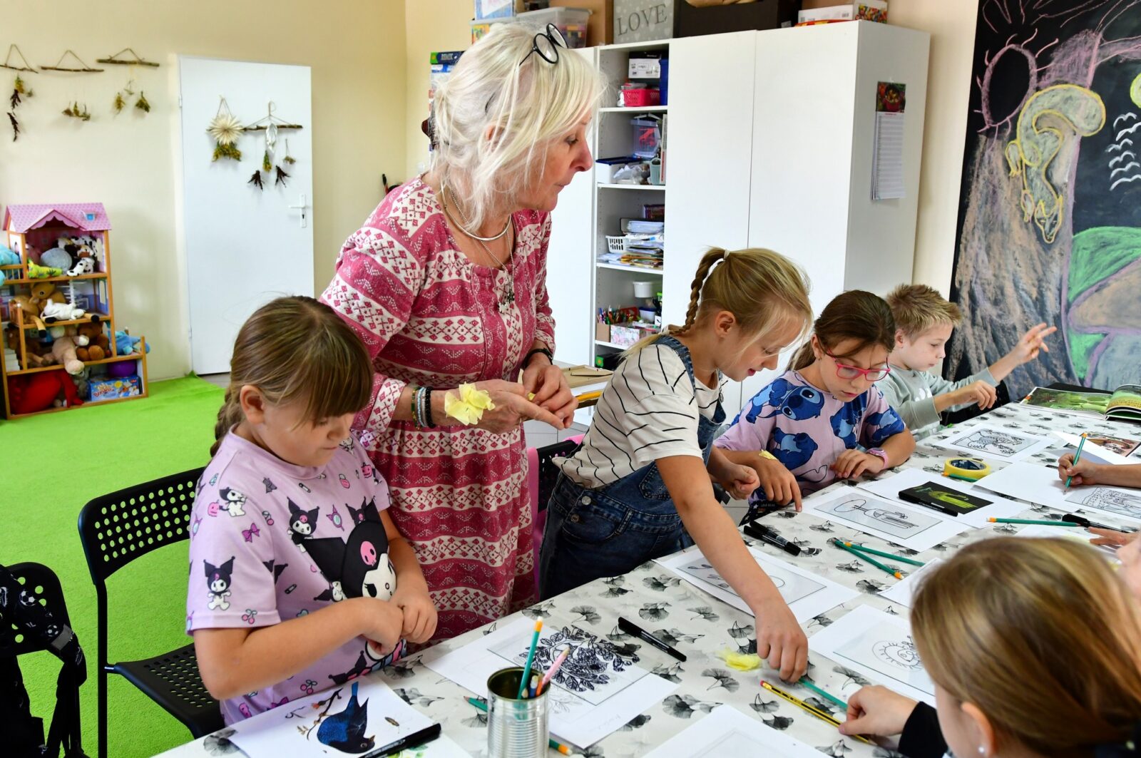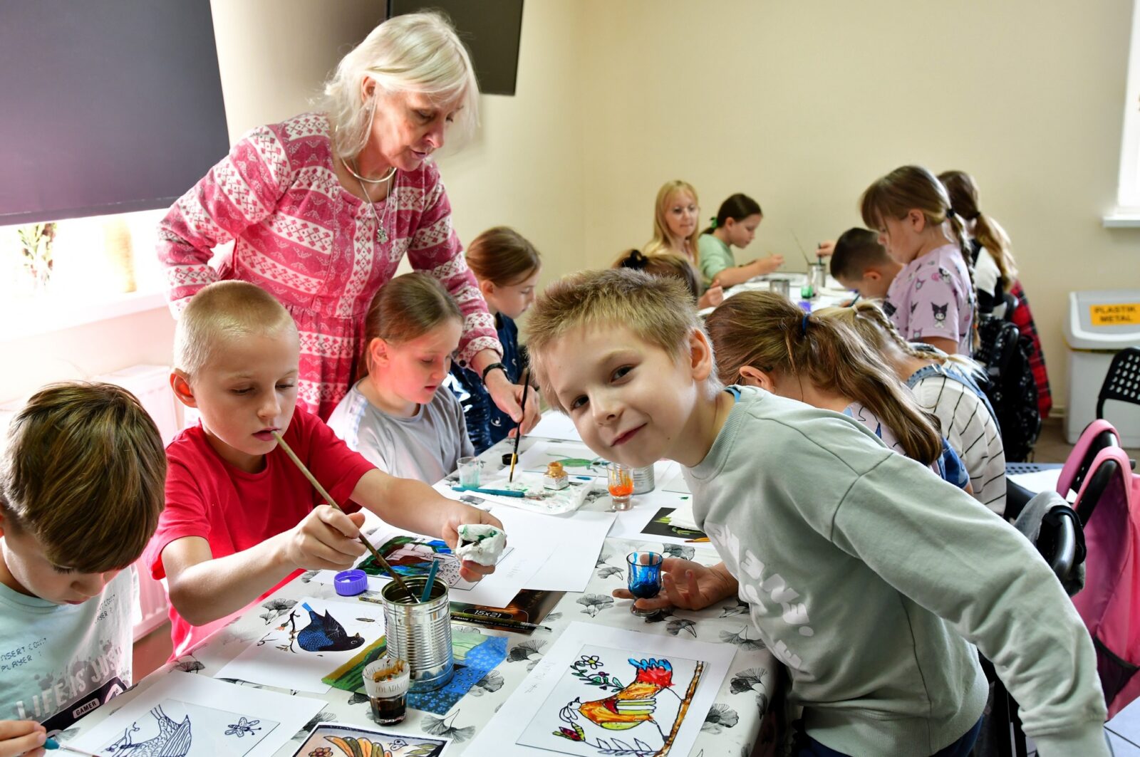 Drugiego dnia uczestniczki i uczestnicy zajęć pod okiem pani Alicji Wiślińskiej-Kornackiej mogli cieszyć się pełnym efektem swojej pracy – barwne ilustracje zyskały tła i ramy, a młodzi artyści odważnie sygnowali je własnymi podpisami.