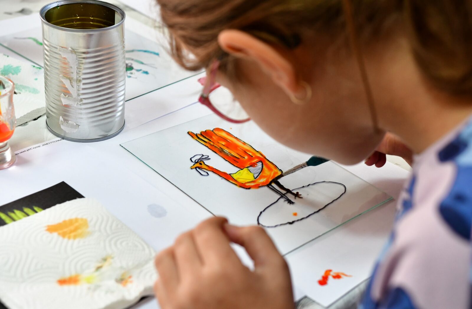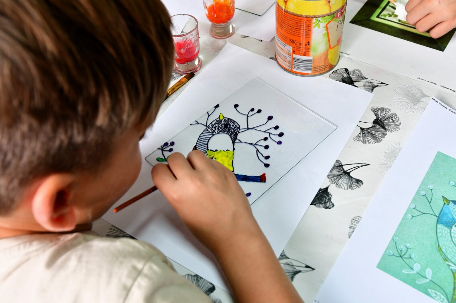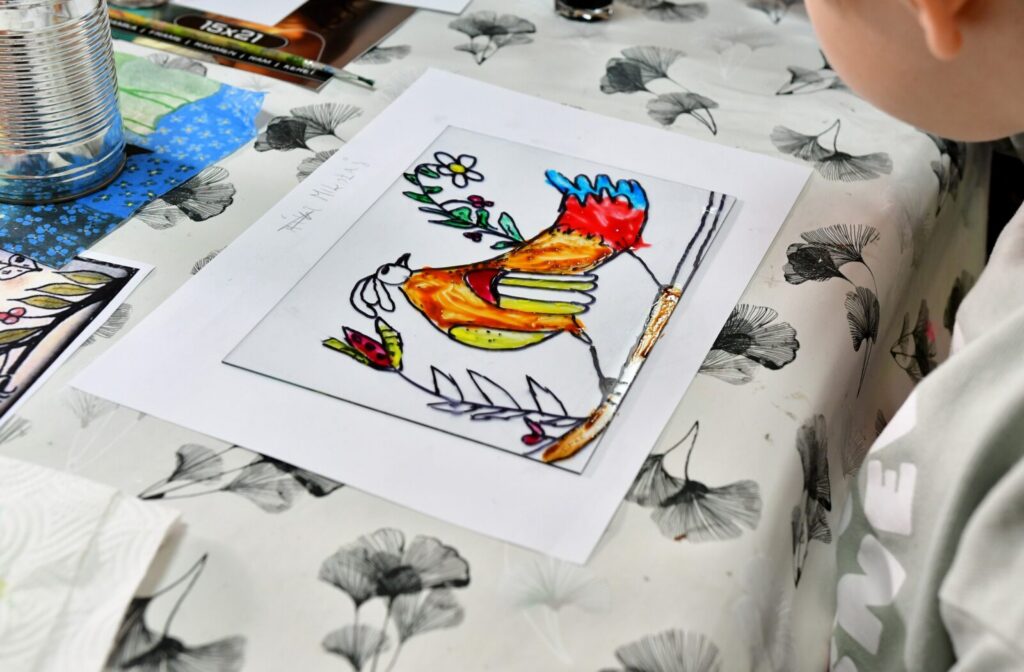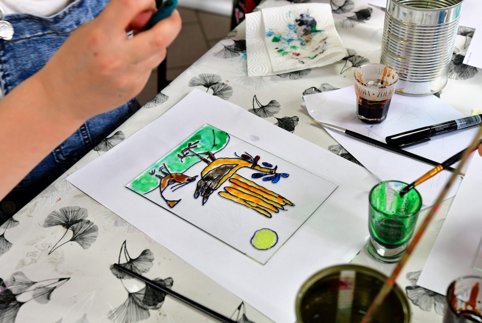 Zainspirowani pięknem przyrody Borów Tucholskich – ich fauną i florą – nasi młodzi twórcy stworzyli własne szkice, które następnie przenieśli na tafle szkła. Kolejne etapy pracy – od rysowania konturów po wypełnianie ich farbami – przynosiły coraz więcej radości i zachwytu. Każda nowa warstwa dodawała obrazkom głębi, a moment podniesienia gotowej tafli, gdy farby wyschły, okazał się prawdziwą magią.