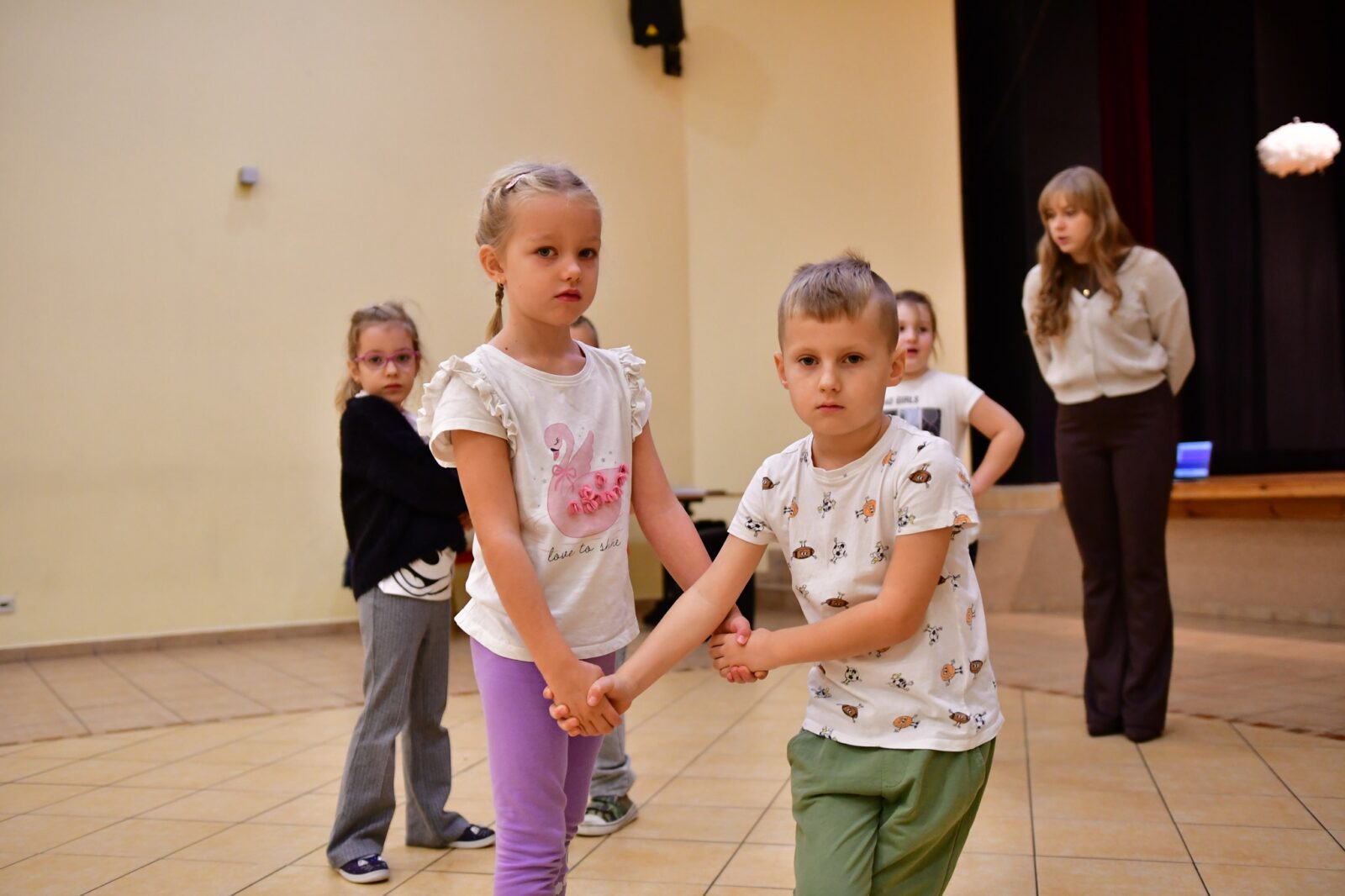 - będziemy rozwijać poczucie rytmu, współpracę i radość wspólnego tańczenia,