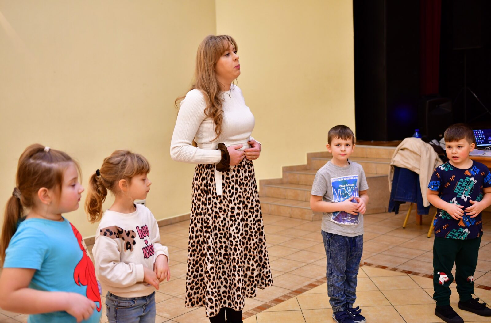 Drugie warsztaty rozpoczęły się z przytupem! A właściwie… z dwiema rozgrzewkami! Po solidnym rozciąganiu z Panem Krzysztofem, Pani Andżelika zadbała o to, by rozgrzać także głosy uczestniczek i uczestników warsztatów, prowadząc rozgrzewkę artykulacyjną.