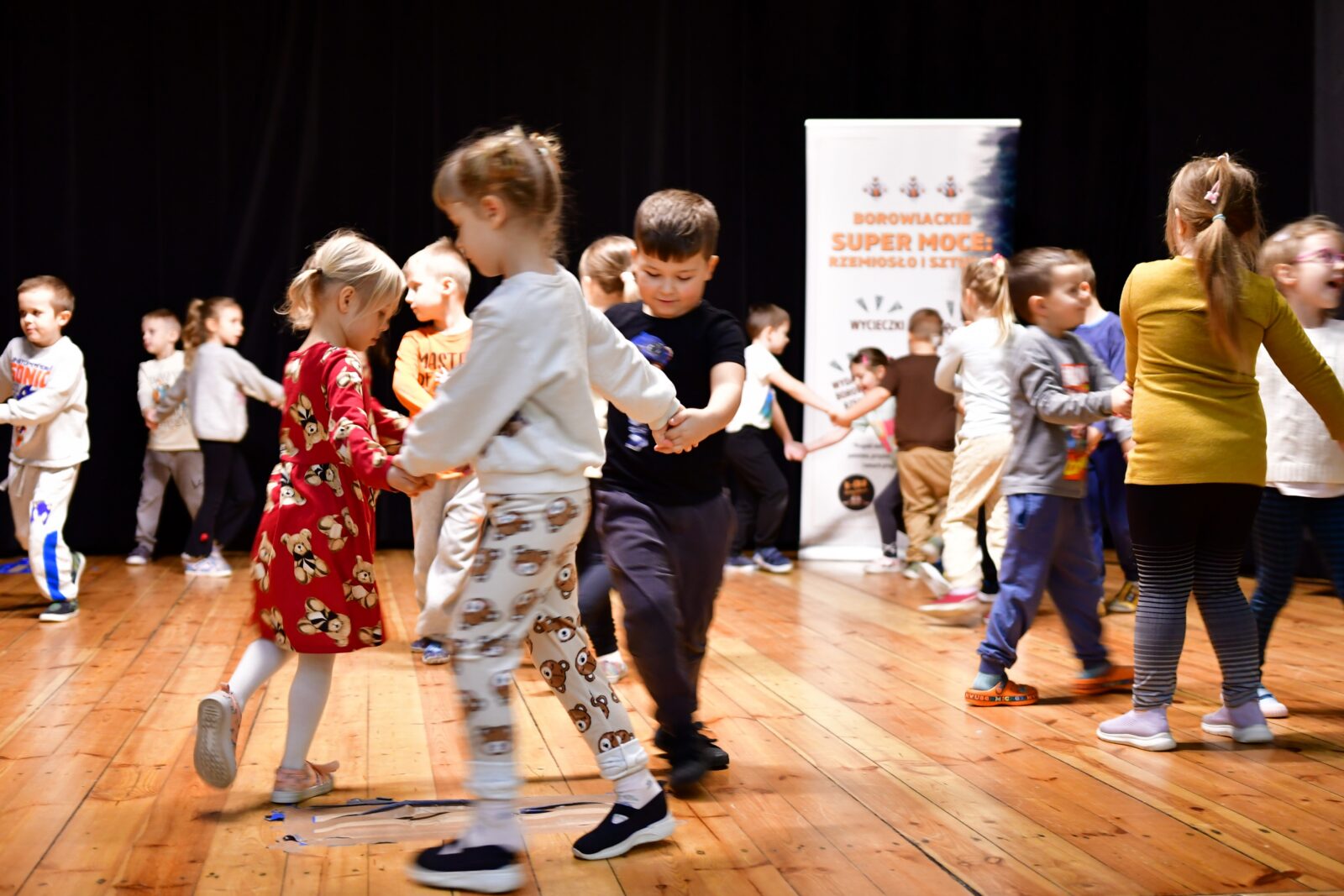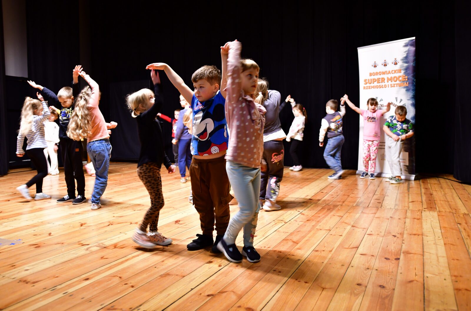 To były ostatnie warsztatowe spotkania w ramach projektu „Borowiackie Super Moce – rzemiosło i sztuka”. Młodzi tancerze i tancerki mają już w nogach trzy różne układy taneczne – a przed nimi próba generalna i mini pokaz, który odbędzie się już w przyszłym tygodniu – we wtorek 2 grudnia!