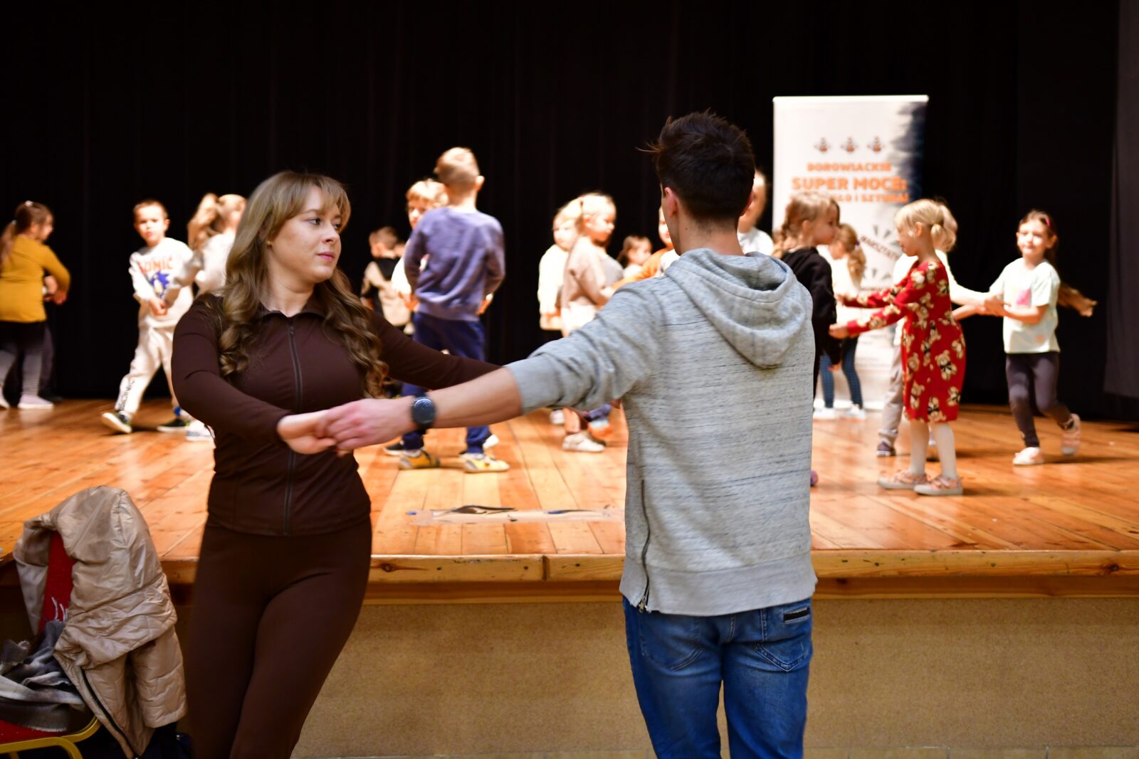 Efekty ciężkiej pracy i ogromnego zaangażowania młodych tancerzy i tancerek były już widoczne! Pierwsze układy taneczne prezentują się coraz piękniej i precyzyjniej! To wspaniale widzieć, jak rozwijają się kolejne „Borowiackie Super Moce”!