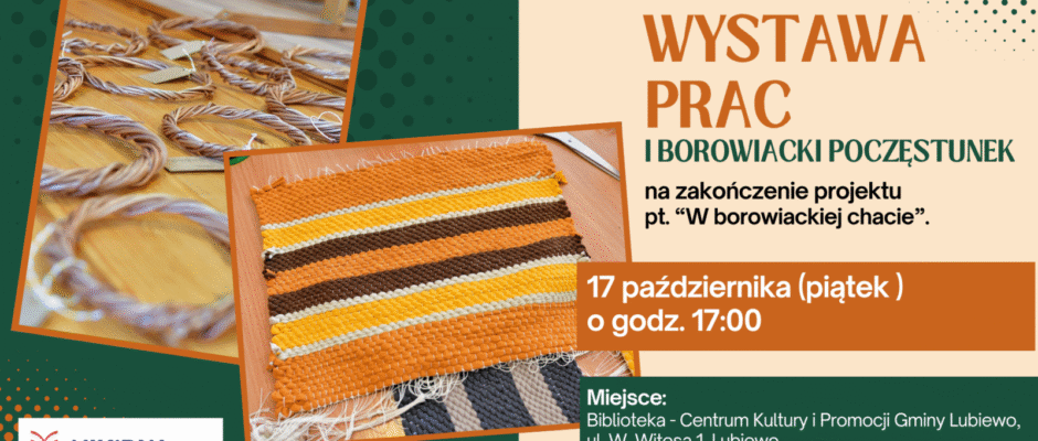 Jesień mija nam błyskawicznie i już w przyszły piątek kończymy jeden z borowiackich projektów: „W Borowiackiej Chacie”. Zapraszamy Was do wspólnego podsumowania tego intensywnego, ale i pięknego czasu. Spotkajmy się w borowiackiej atmosferze na wydarzeniu: „Wystawa prac i borowiacki poczęstunek”