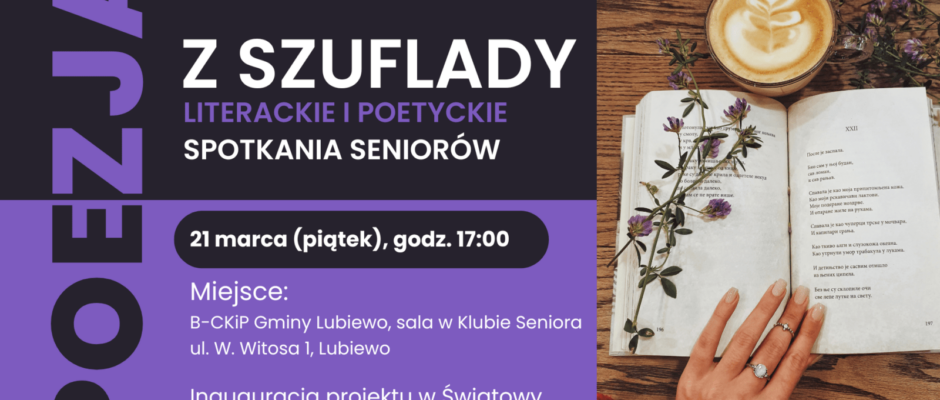 Serdecznie zapraszamy na cykl spotkań pt. „Z SZUFLADY – LITERACKIE I POETYCKIE SPOTKANIA SENIORÓW”