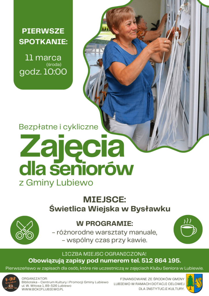 Pierwszeństwo w zapisach mają osoby, które nie uczestniczą w zajęciach Klubu Seniora w Lubiewie.