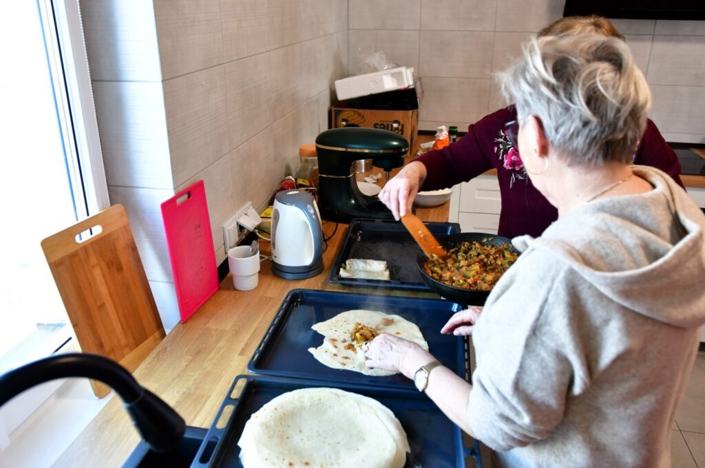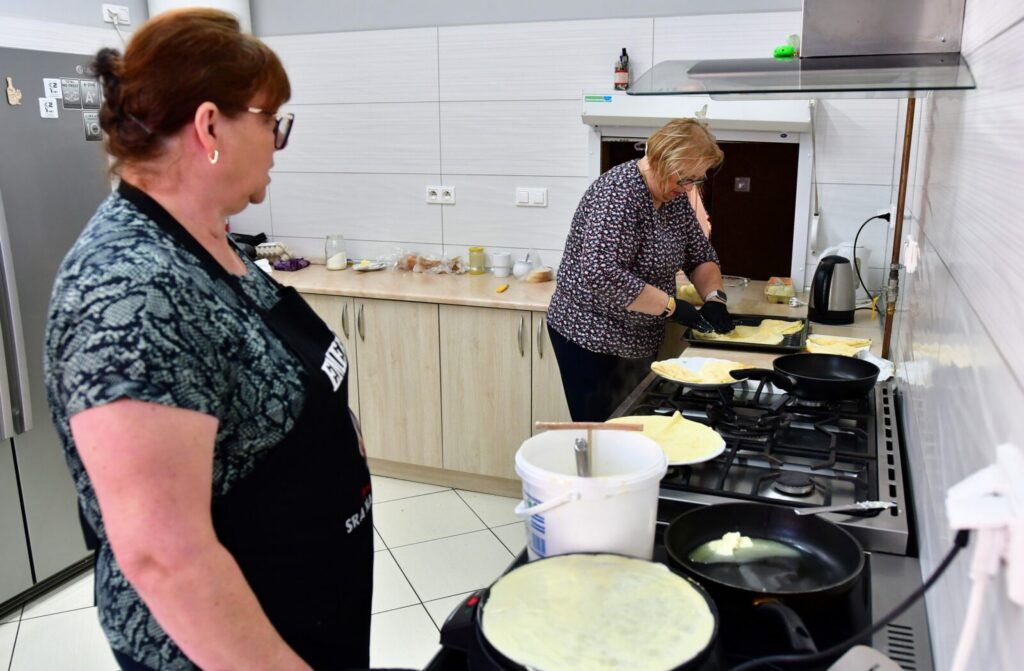 Poniedziałkowe spotkanie rozpoczęliśmy od kulinarnych przyjemności: na stołach królowały naleśniki w wersji słodkiej i słonej. Pani Mirka zdradziła swój sprawdzony przepis na naleśniki z serem i karmelem, a zapiekane naleśniki z kurczakiem i warzywami powstały pod czujnym okiem pani Grażynki. Aromaty szybko przegoniły zimową aurę za oknem!