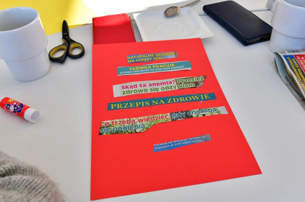 Pełni smakowitej energii seniorki i seniorzy ruszyli następnie do działań wokół poezji. Warsztaty literackie pt. „Nic zwyczajnego – zabawa słowem z Wisławą Szymborską” obejmowały ciekawostki z życia poetki, wspólne czytanie limeryków, lepiejów oraz wierszy „Nic dwa razy” i „Kot w pustym mieszkaniu”.