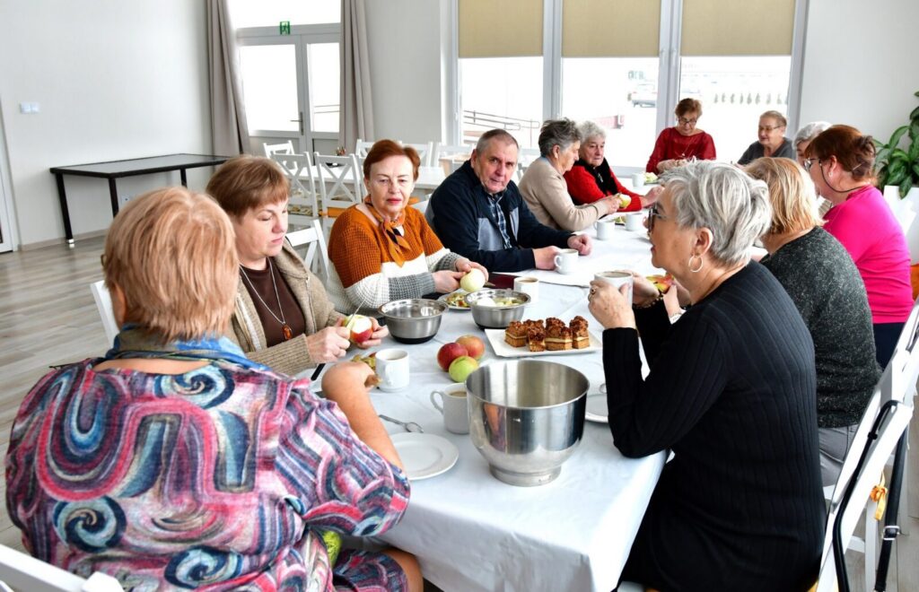 Seniorzy wspólnie przygotowali rozgrzewającą przekąskę z pieczonych jabłek, ryżu i aromatycznego cynamonu, a następnie – pod czujnym okiem Krystyna Deręgowska – stworzyli piękne serca ozdobione kwiatowymi kompozycjami.