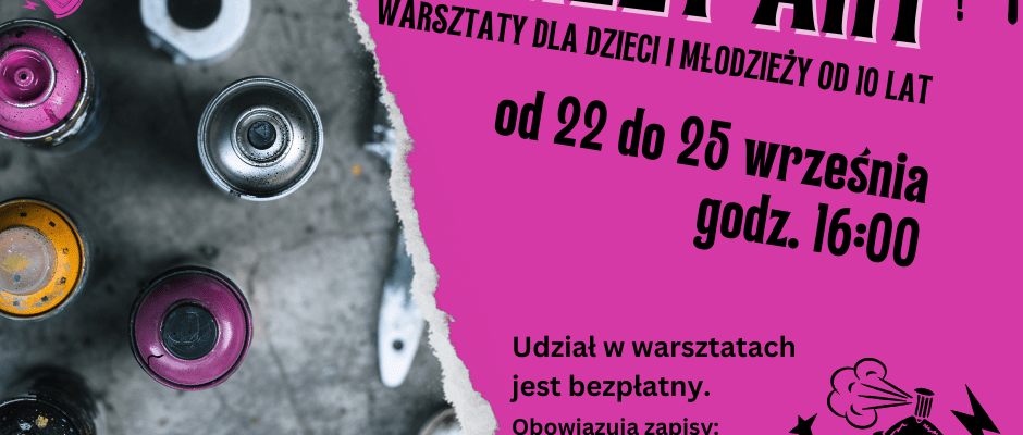 Zapraszamy Was na warsztaty street artu, podczas których razem ze znanym toruńskim artystą Andrzej Poprostu stworzymy wyjątkowy, autorski mural!